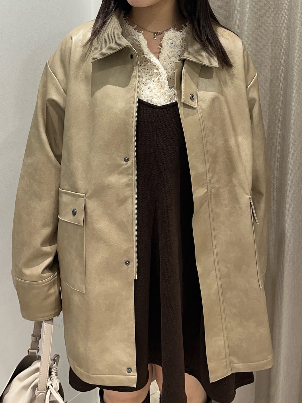 アウターもレザーなので淡色ですが甘過ぎないのもイチオシポイント!