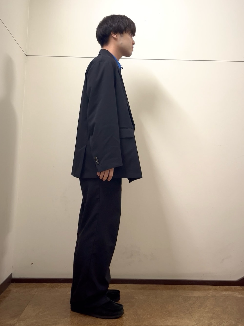 このシャツは差し色にも使えるので、このようにジャケットの下に着れば自然と顔に視線誘導ができて、オシャレなコーディネートにすることが出来ますよ!👔