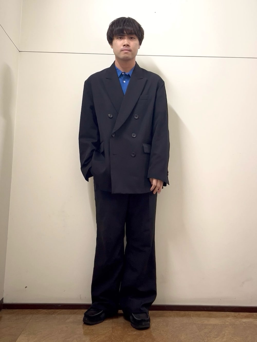 発色のいいブルーのシャツを使って、ジャケットコーデを組みました🧥