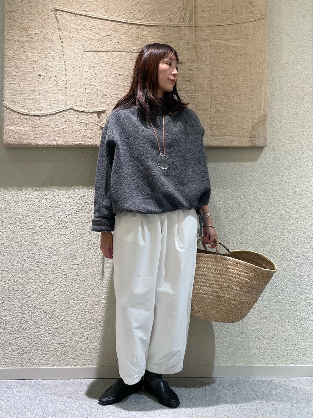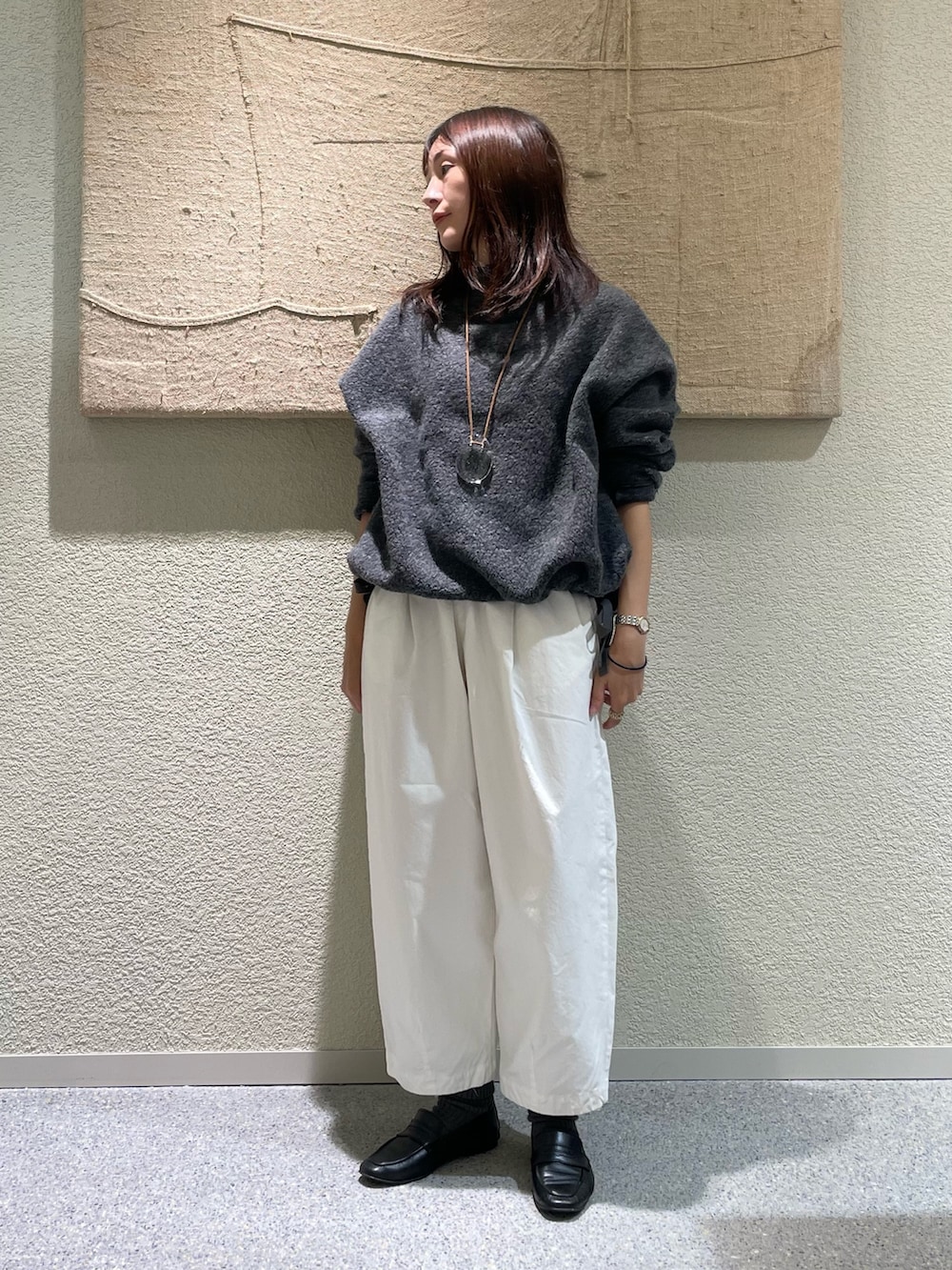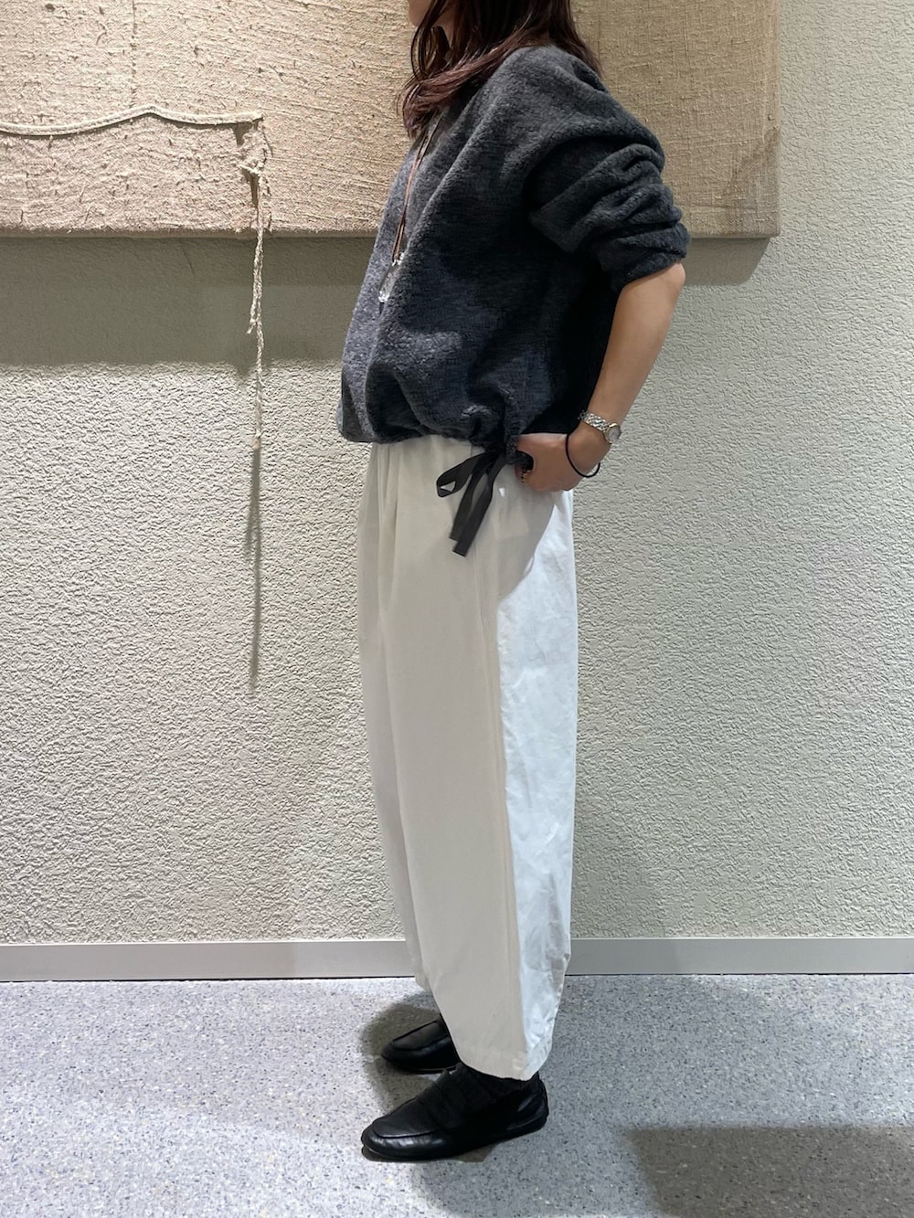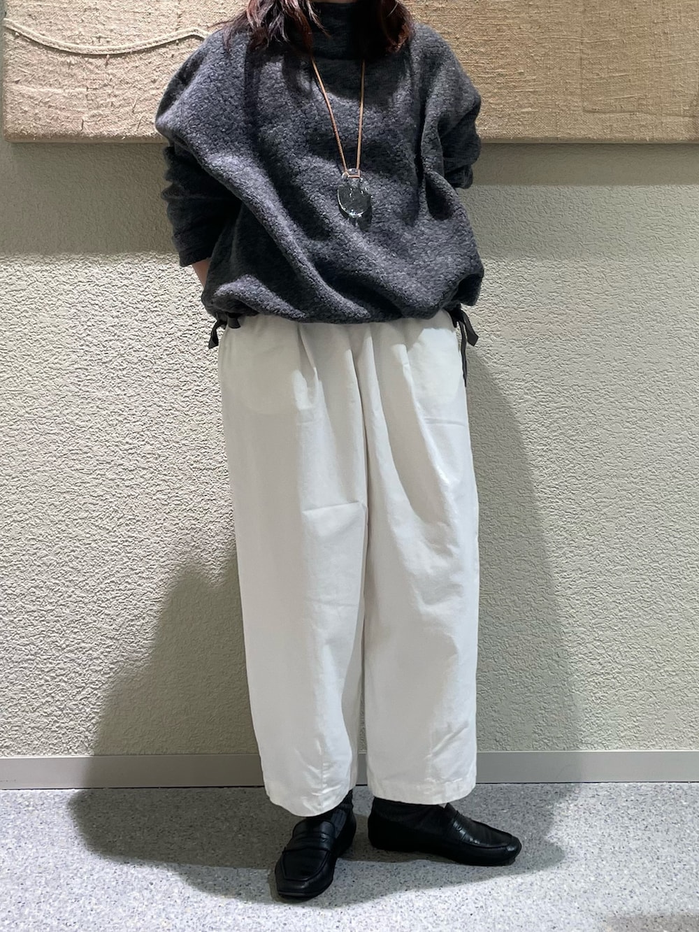 コットンクロップドパンツのOFF、冬のオールホワイトコーデも可愛いですし、ほっこりし過ぎずにクリーンな印象にしてくれるのでこれからの時期も活躍します!