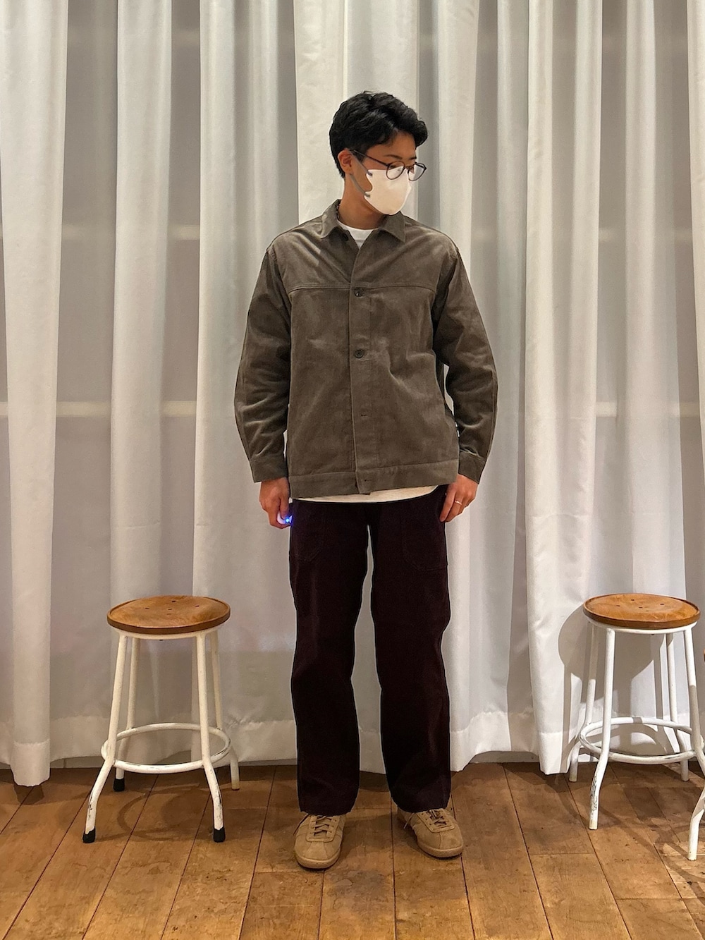 ご覧いただきありがとうございます!今回は最近入ってきたコーデュロイジャケットにGRIPSWANYコラボのキャンプパンツとadidasの TOBACCOを合わせて秋色コーデを組んでみました!コーデュロイジャケットはこの他まだ2つの色がございます!どちらも良い色ですので是非店頭でご覧ください!