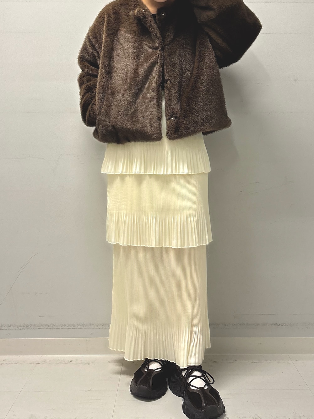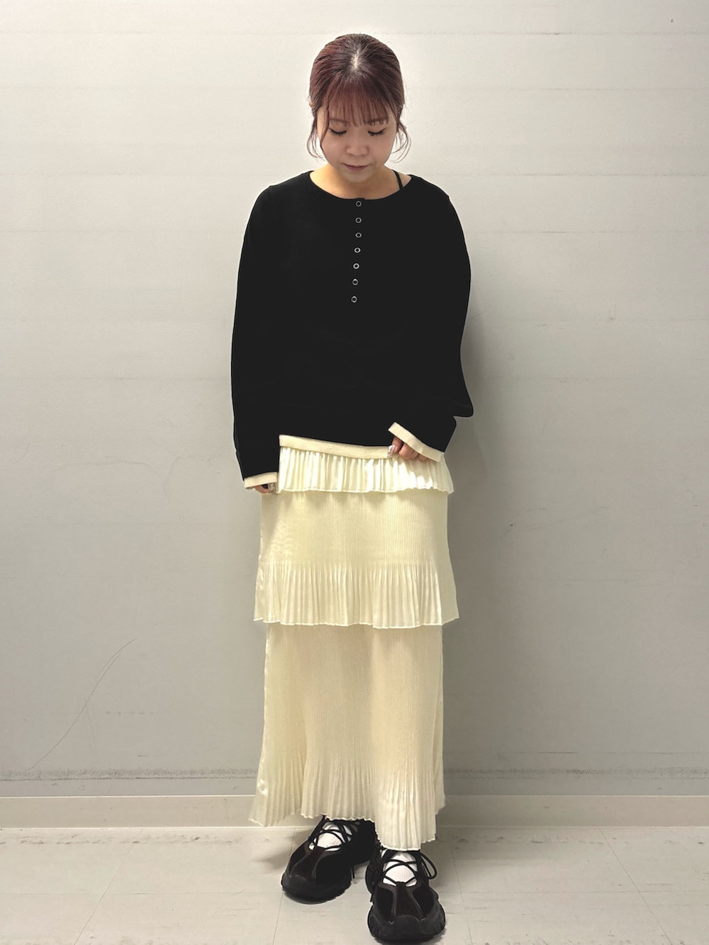 スカートはフリル感がかわいく、ストンと落ち感があるので膨張せずすっきり着れます!✨