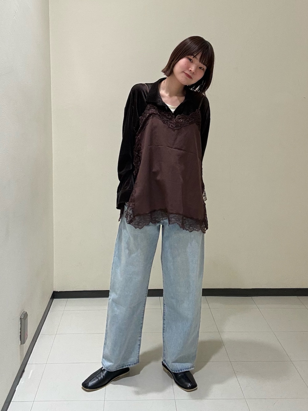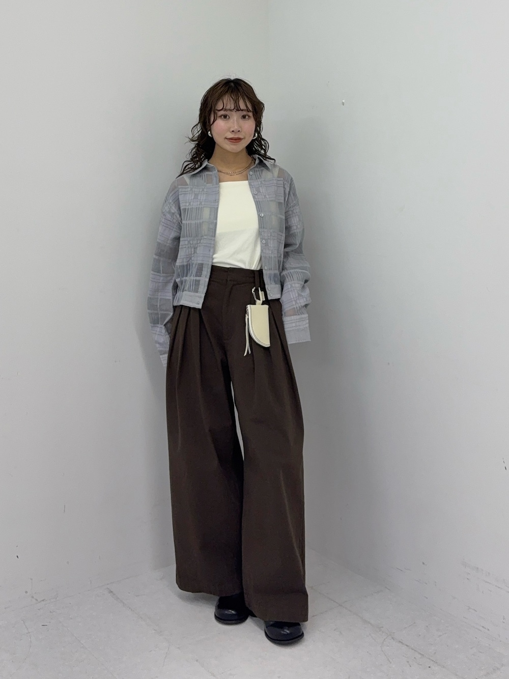 シャツは大きめのサイズ感なので、ウエストマークしてもオシャレに見えます🥂