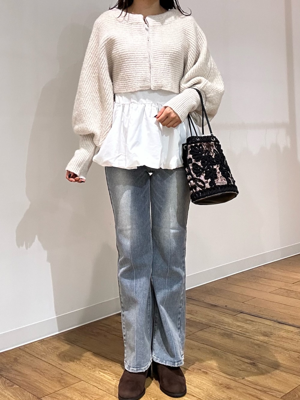 クロップド丈でスッキリ見えるニットカーディガンコーデです❄️