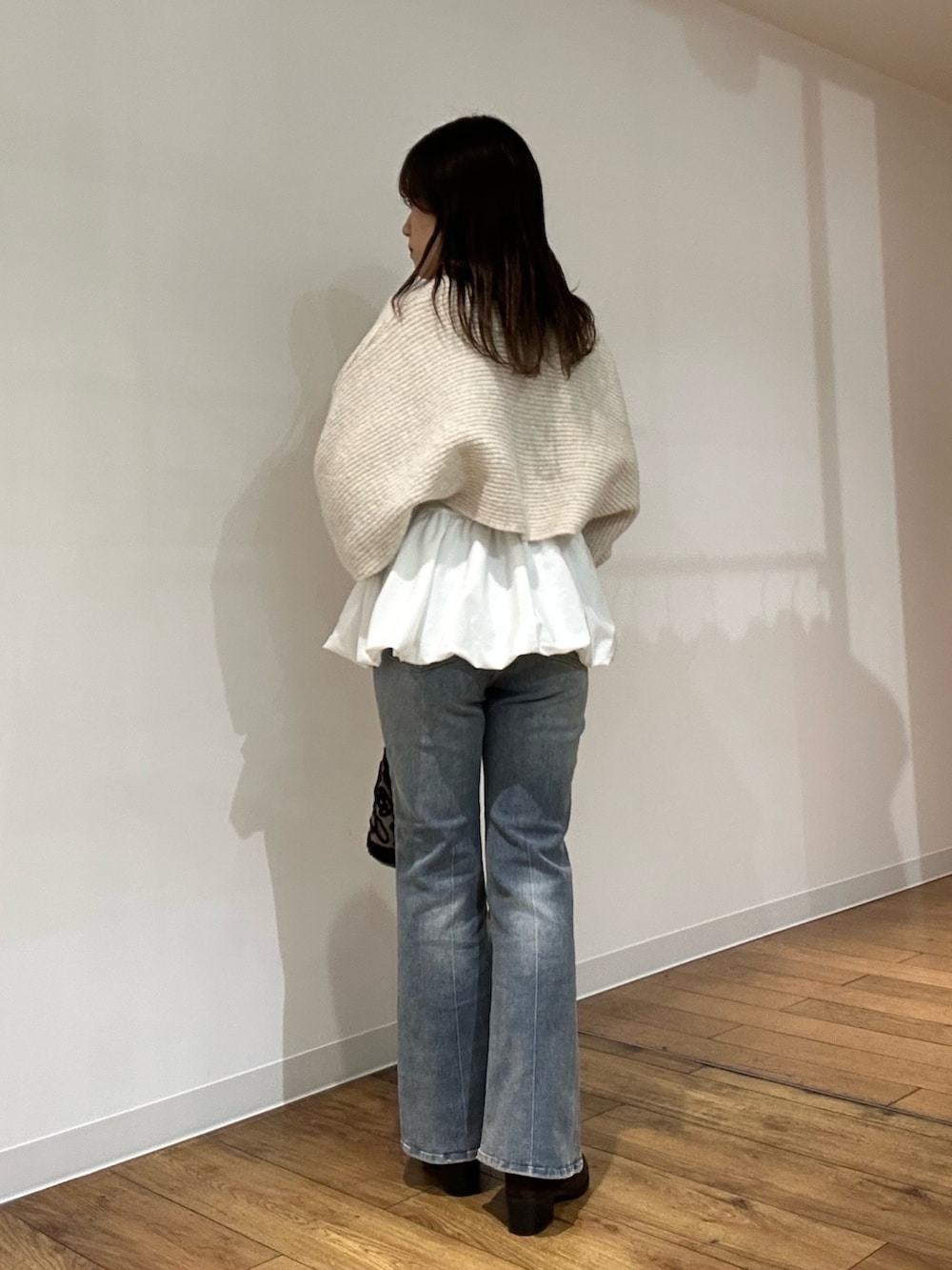ハイネックのセーターやシャツなど丈が短い分、着回しもたくさん楽しめる1枚です!