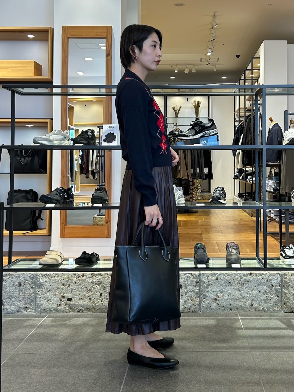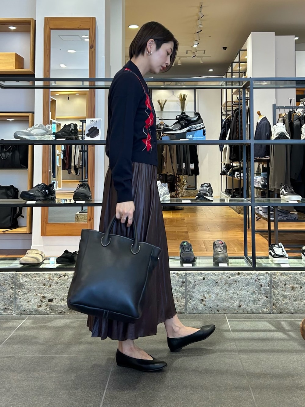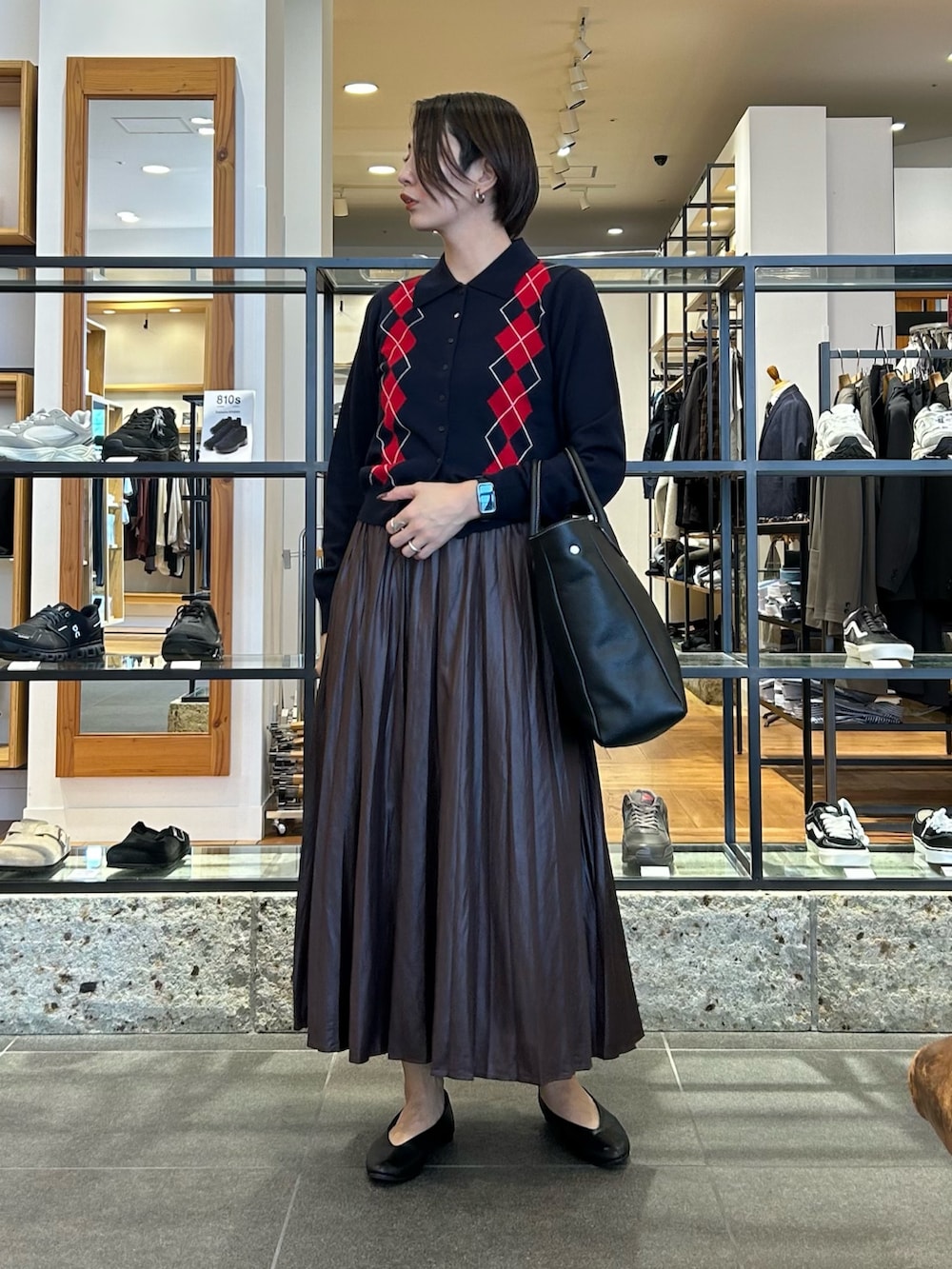 URBAN RESEARCHのチンツプリーツスカートのツヤ感とニットの組み合わせが可愛いです◎