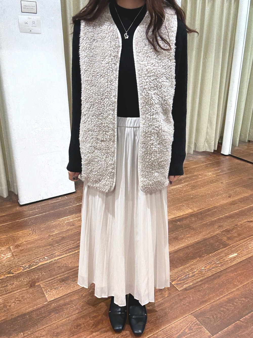 少し長めの丈感でシルエットがとても綺麗なボアベストです!リバーシブルなので、その日のコーデに合わせて2wayで変えられるのが嬉しいポイントです◎
