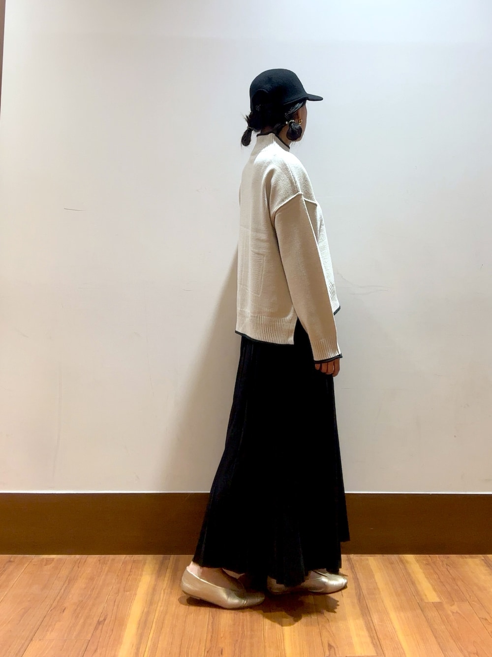 シルエットも綺麗なニットですので、ボトムに困らず合わせやすいです!