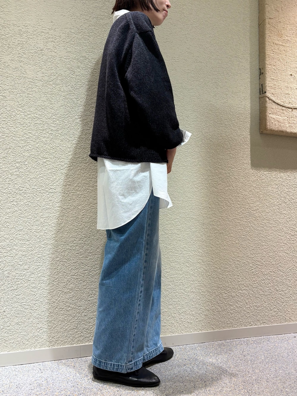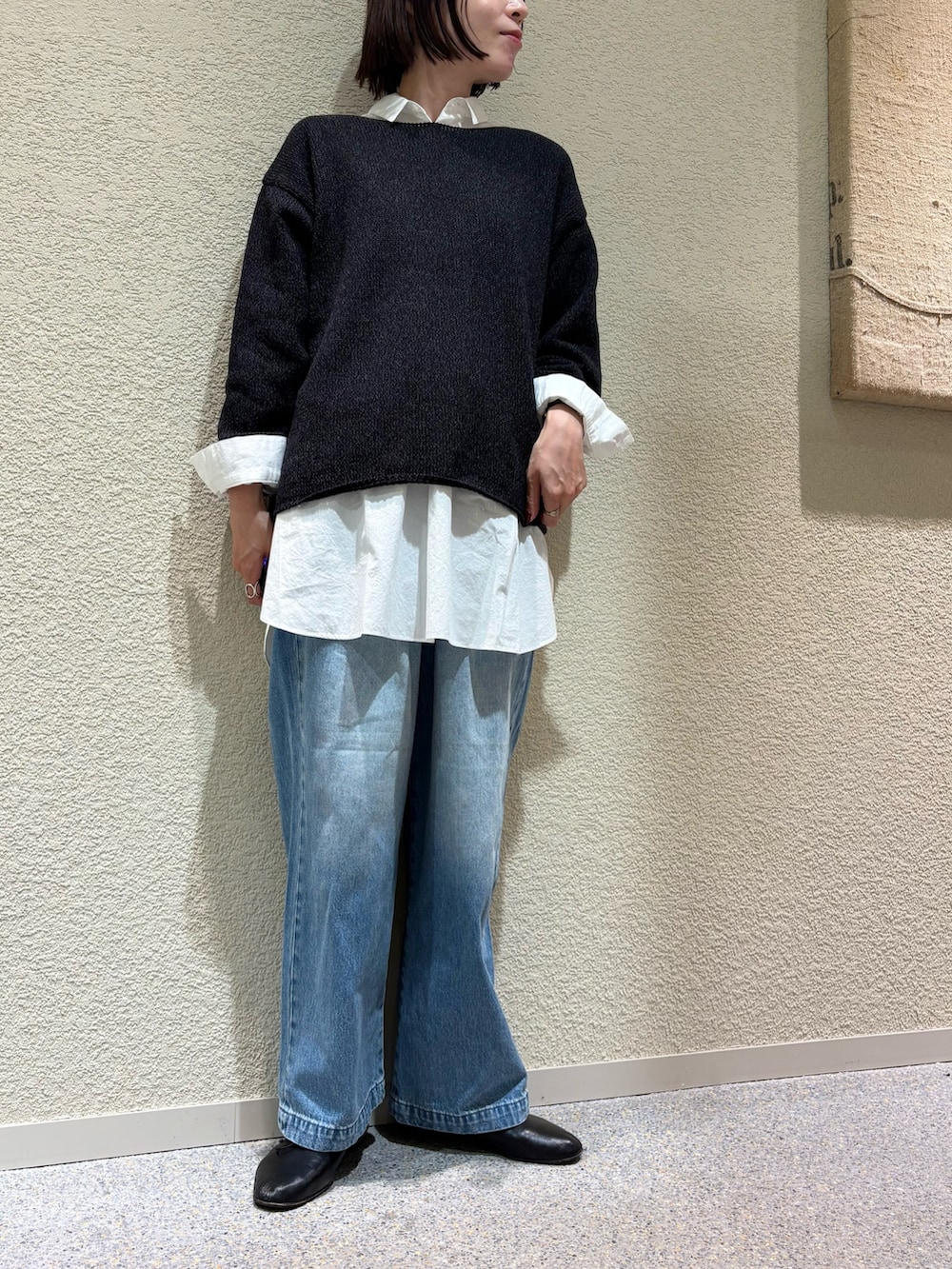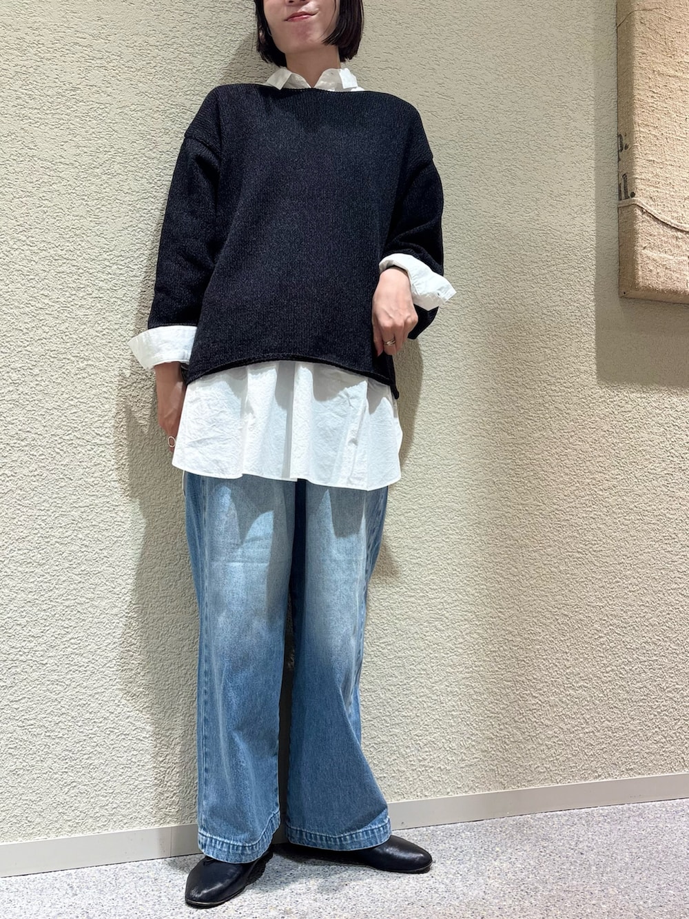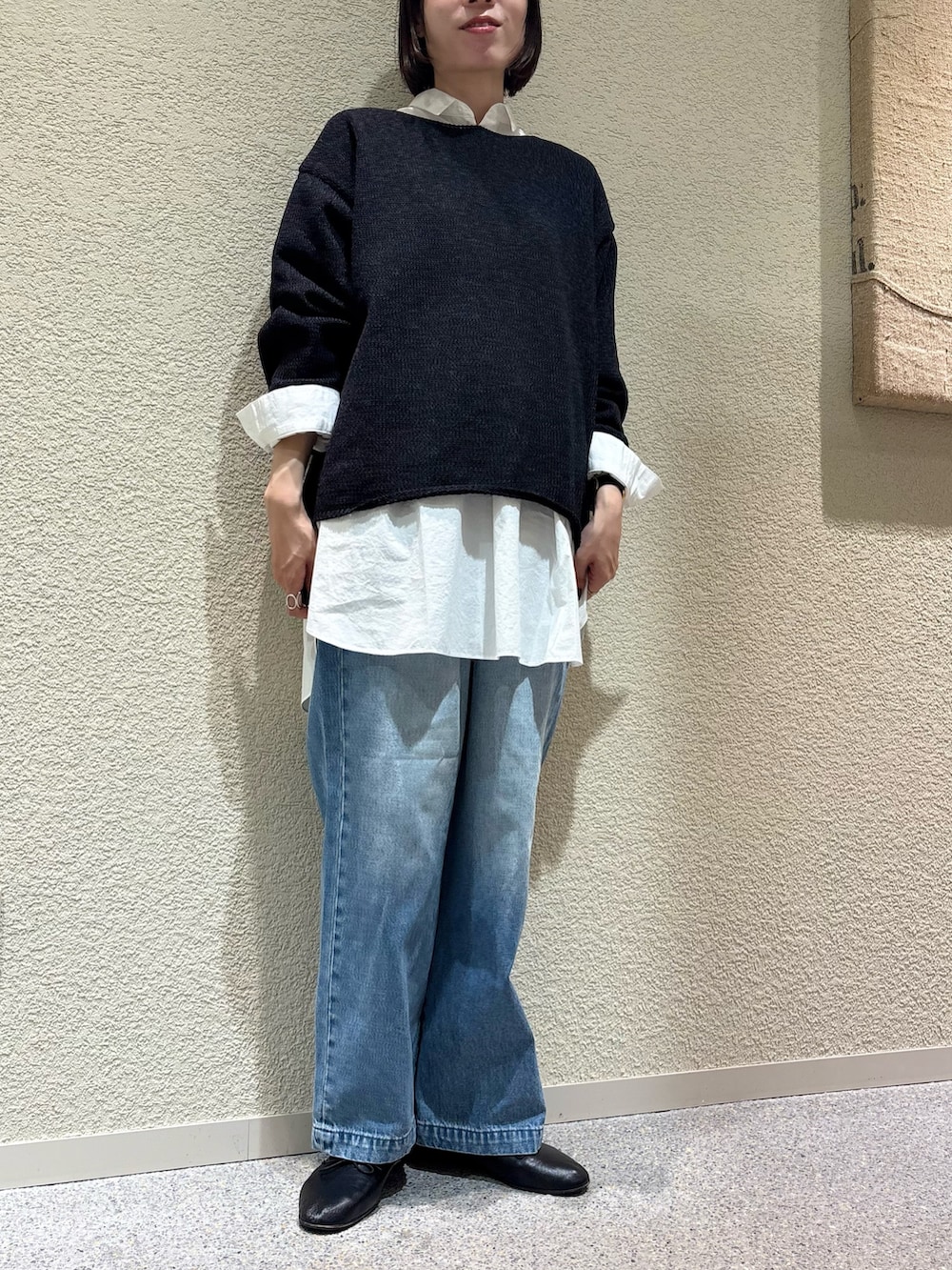 程よくゆとりがあるので、シャツやロンTなどとレイヤードして着るのも可愛いです。