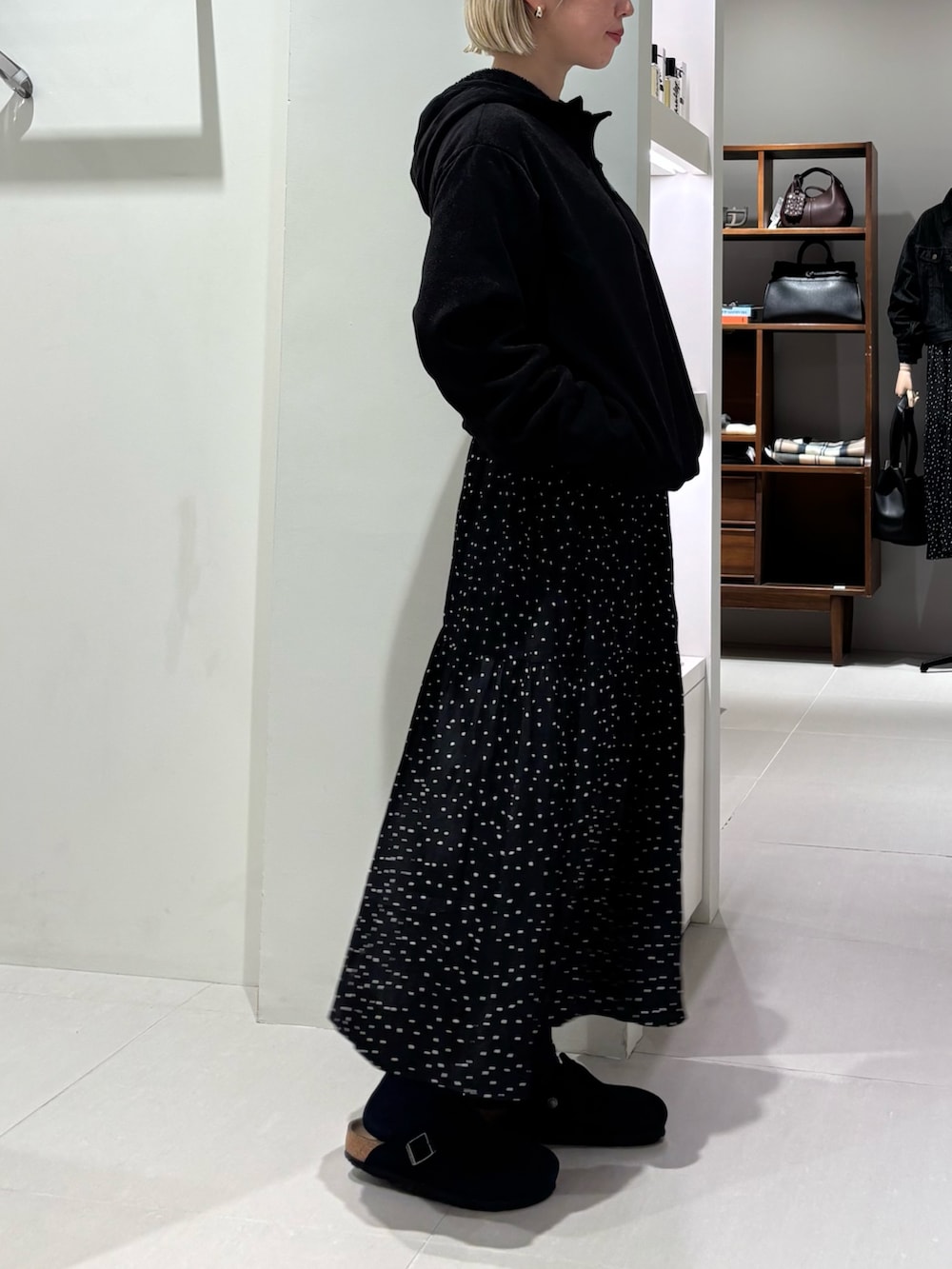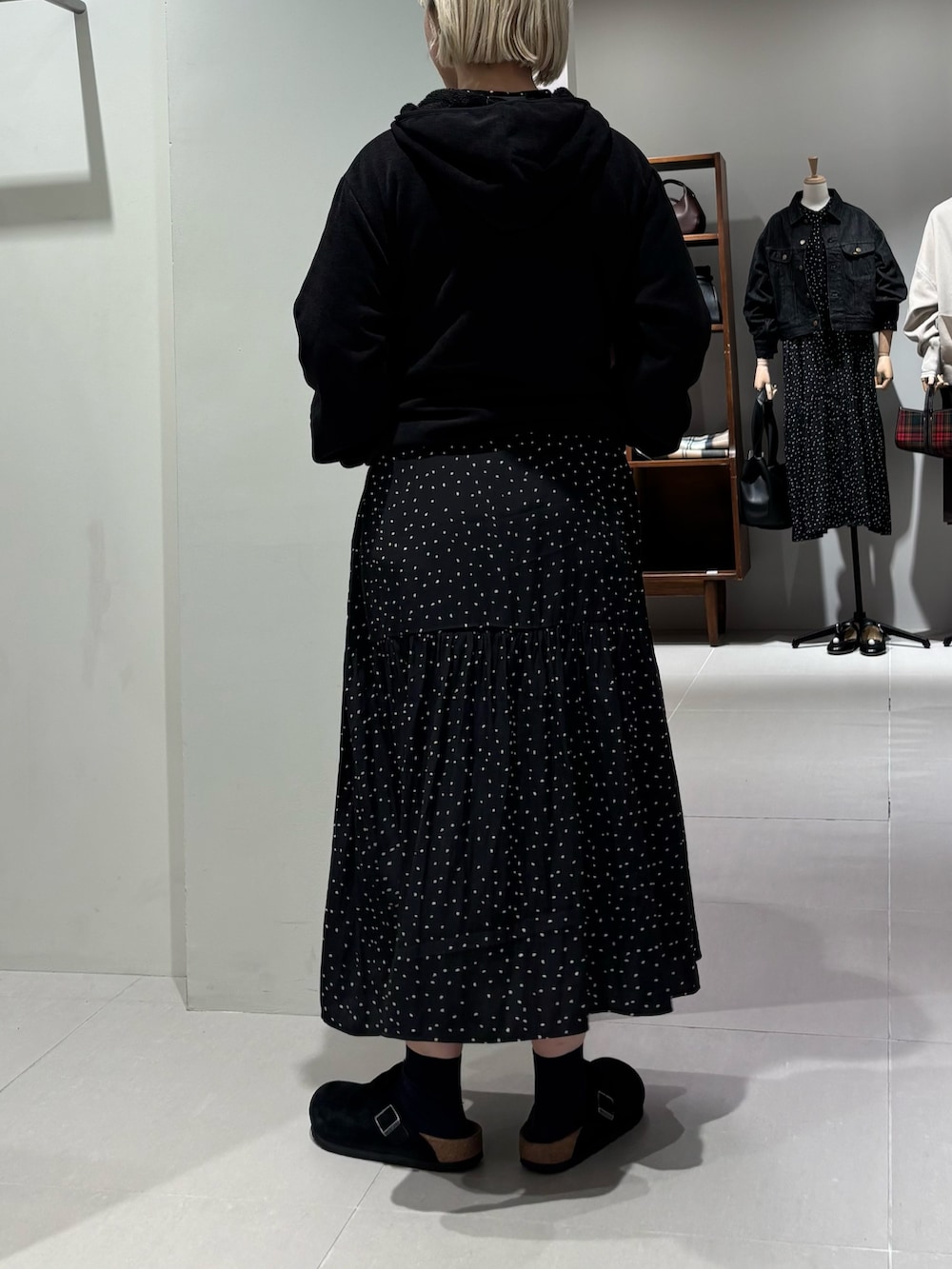 ランダムなドットが甘くなり過ぎず、シンプルなカラーは合わせるものも選ばないので着回しがききます。