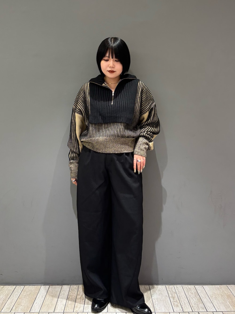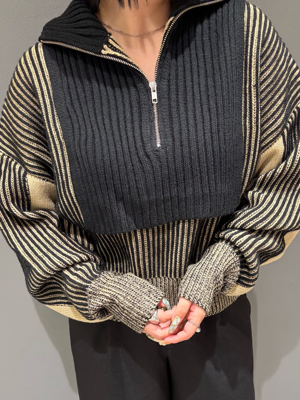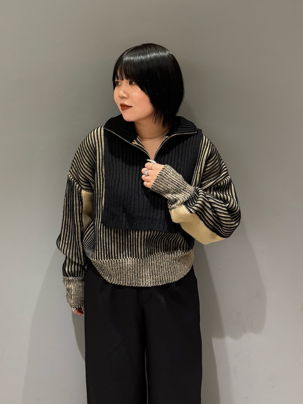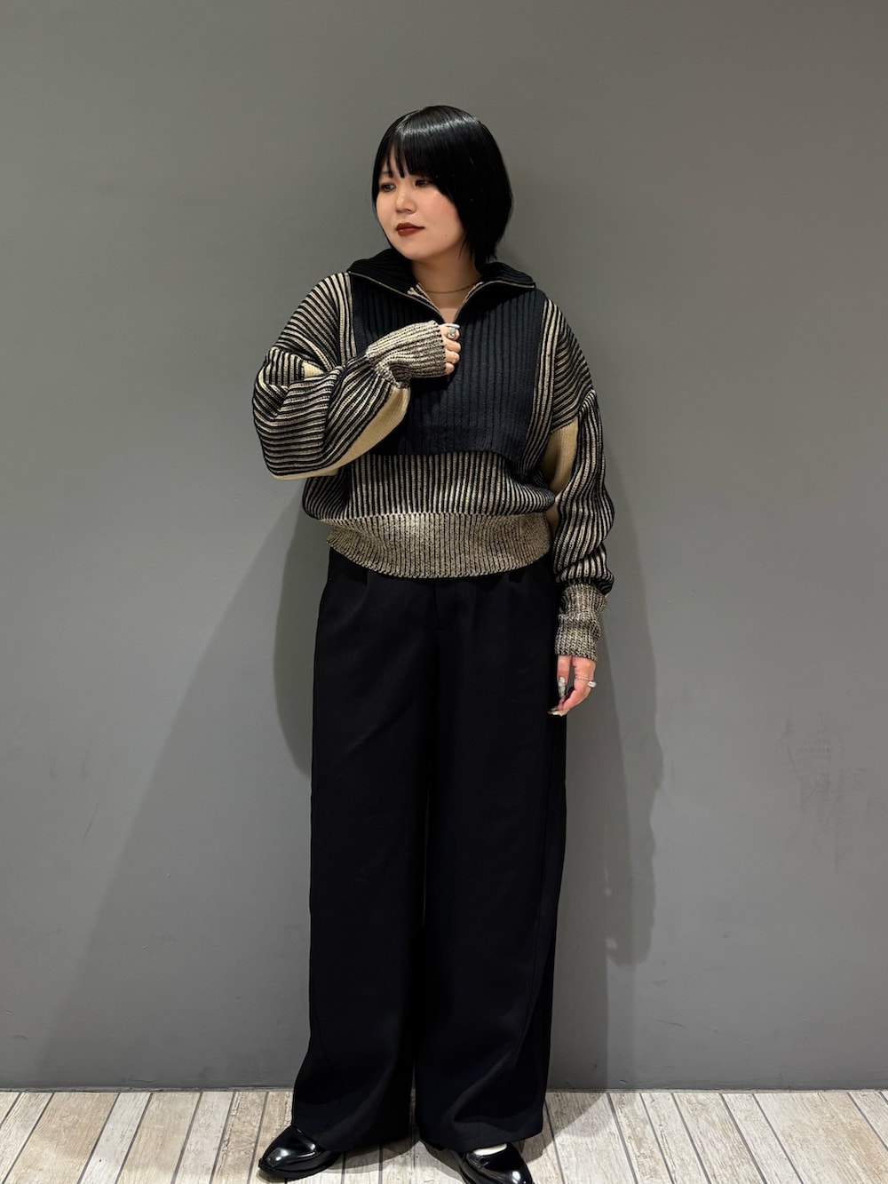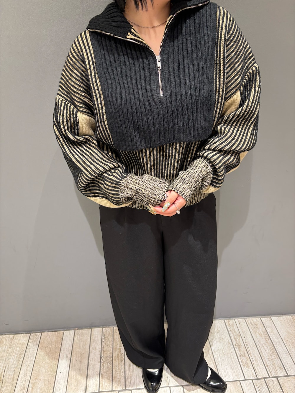 着てみた感じ、生地厚めのしっかりニットなので骨格ストレートさんは中にタートルネックなどのインナーはレイヤードせずに1枚で着る&ジップは下ろして首元スッキリ見せることで着膨れを抑えながら着ていただけますよᵕ ᵕ ♡