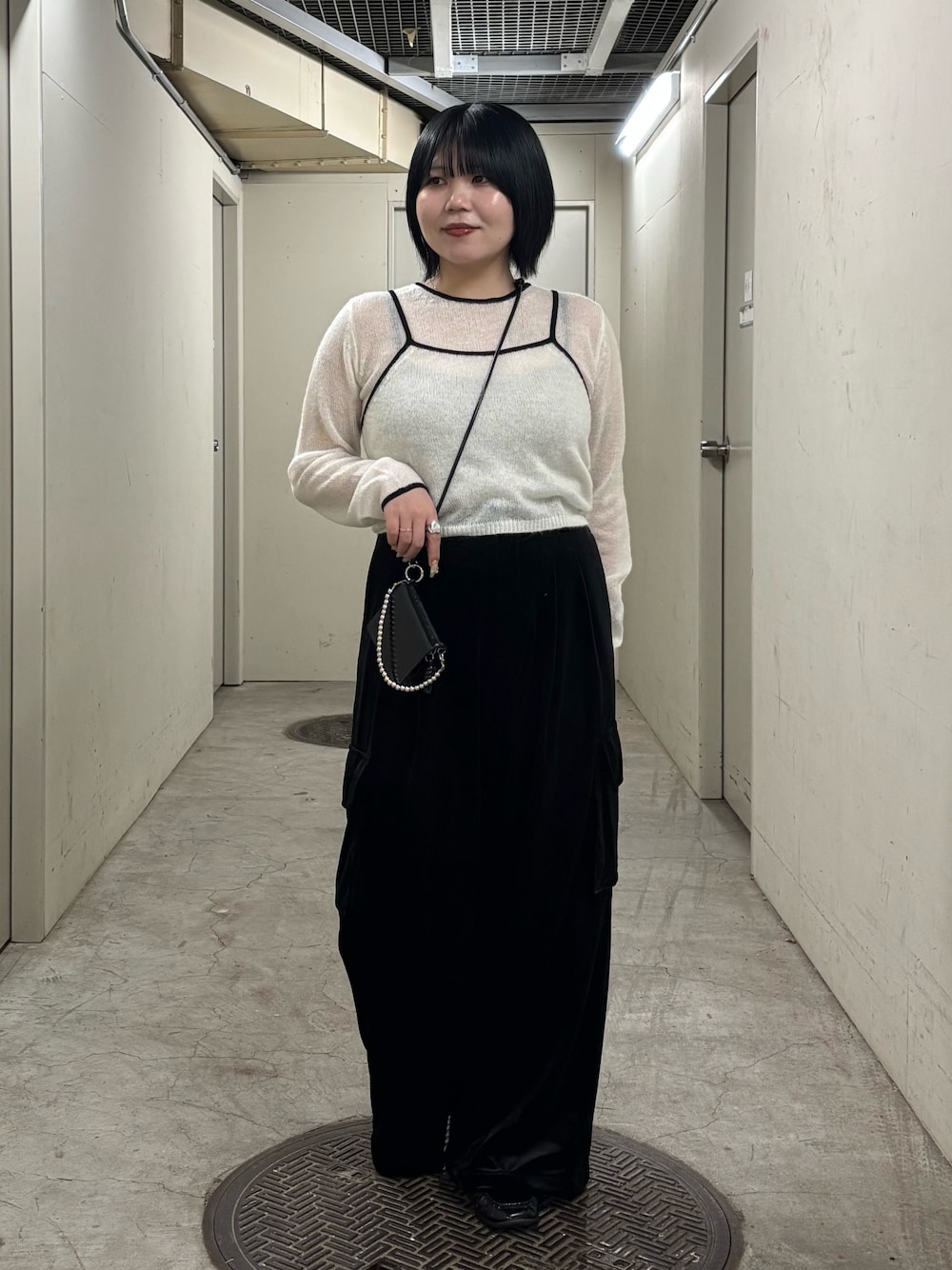着てみた感じ、ビスチェは何の問題もなかったのですが、スカートが若干おしりのラインを拾いやすい?着丈の長いトップスをインすると少しモゴモゴするので気になる方は試着をオススメします!!