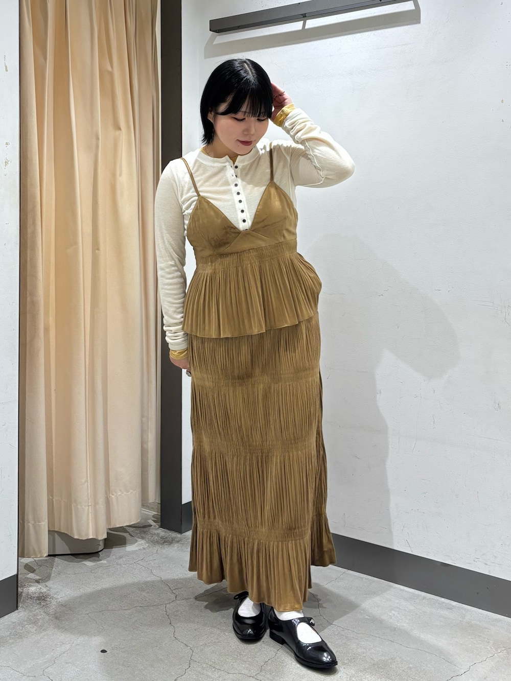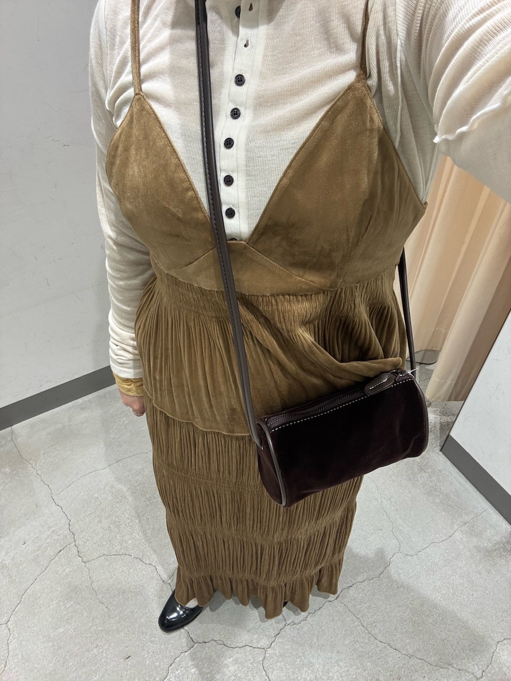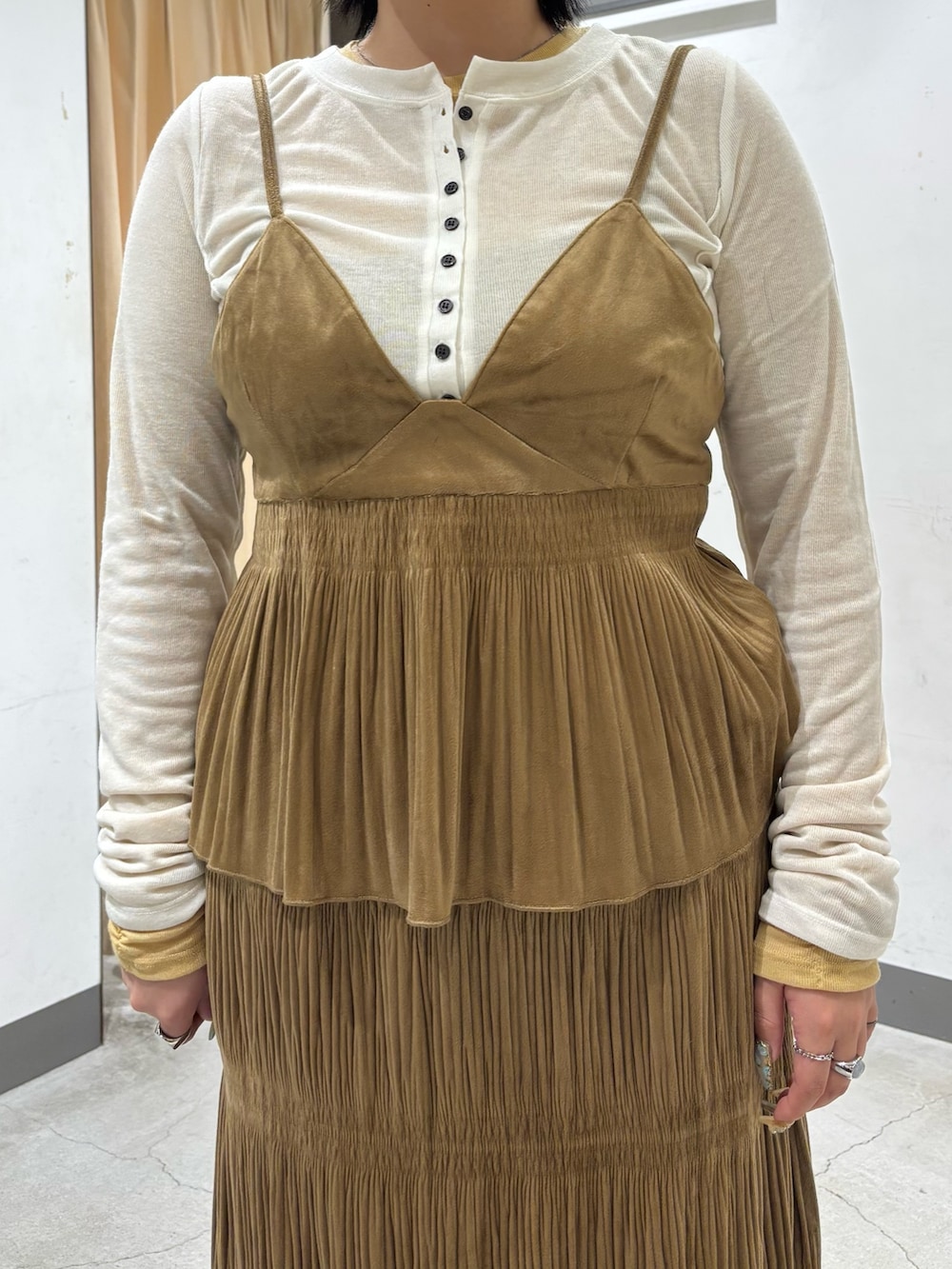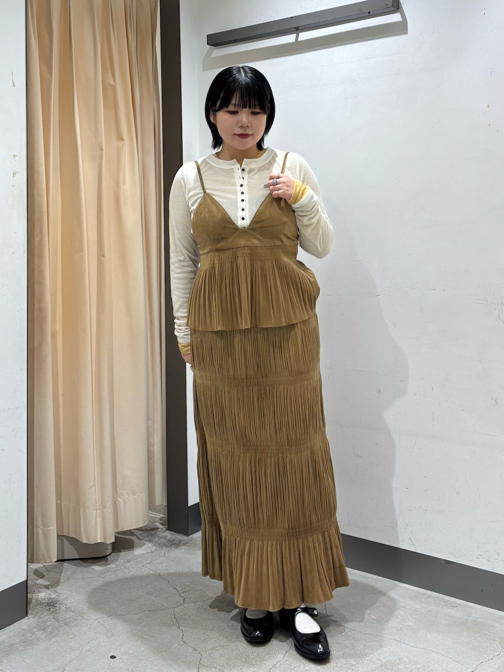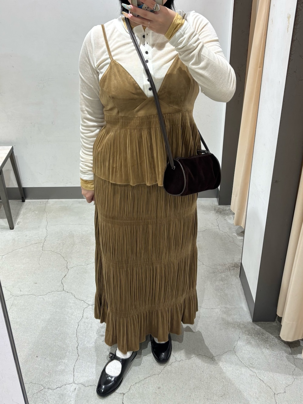 ビスチェは肩紐の長さを調節できるので中に着るインナーの分厚さも考慮でき、スカートは総ゴムなのでストレスフリーな履き心地です✊🏻