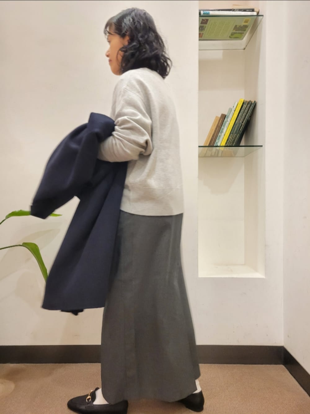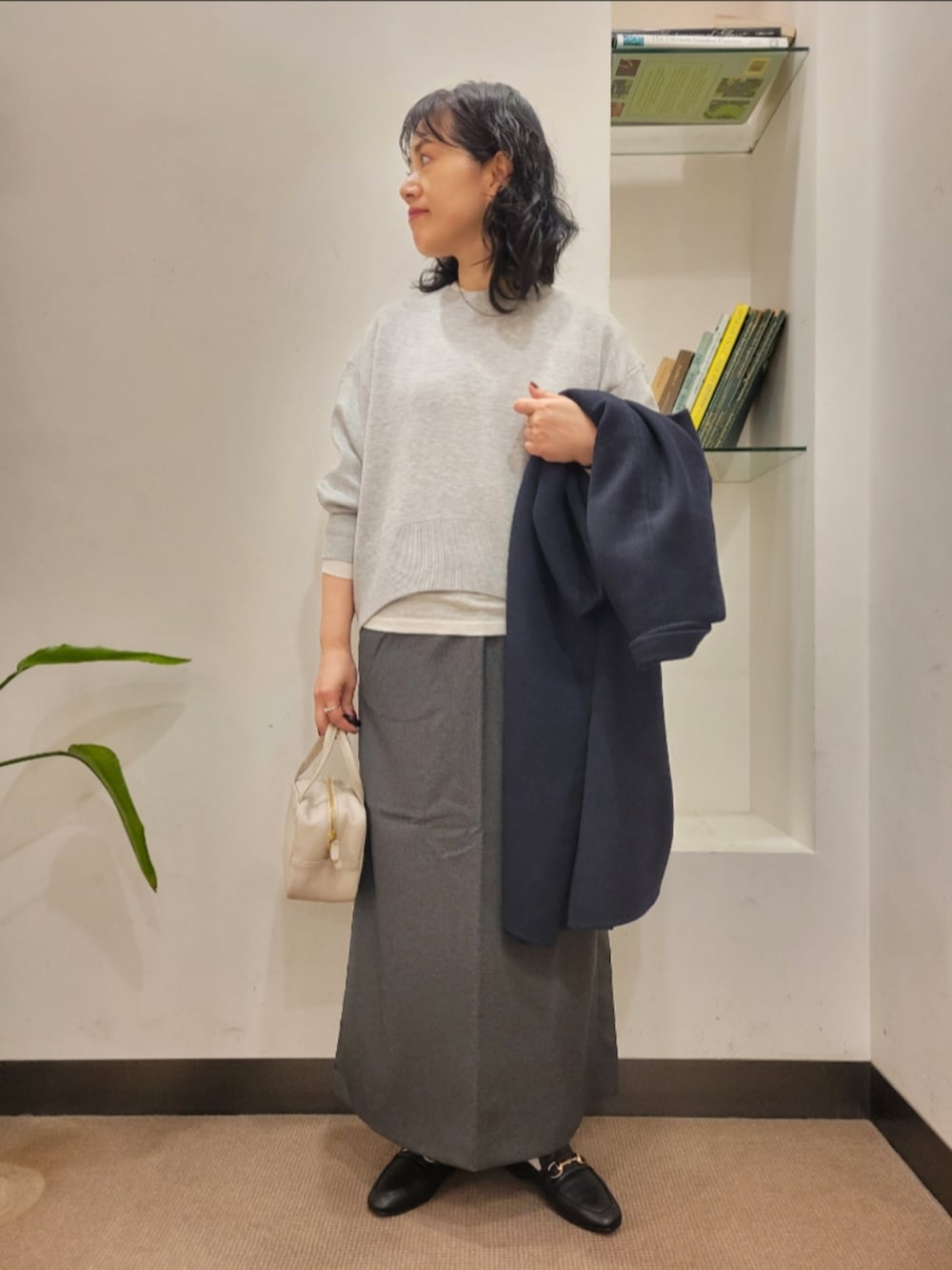 厚手のアイテムも中に着やすいです。