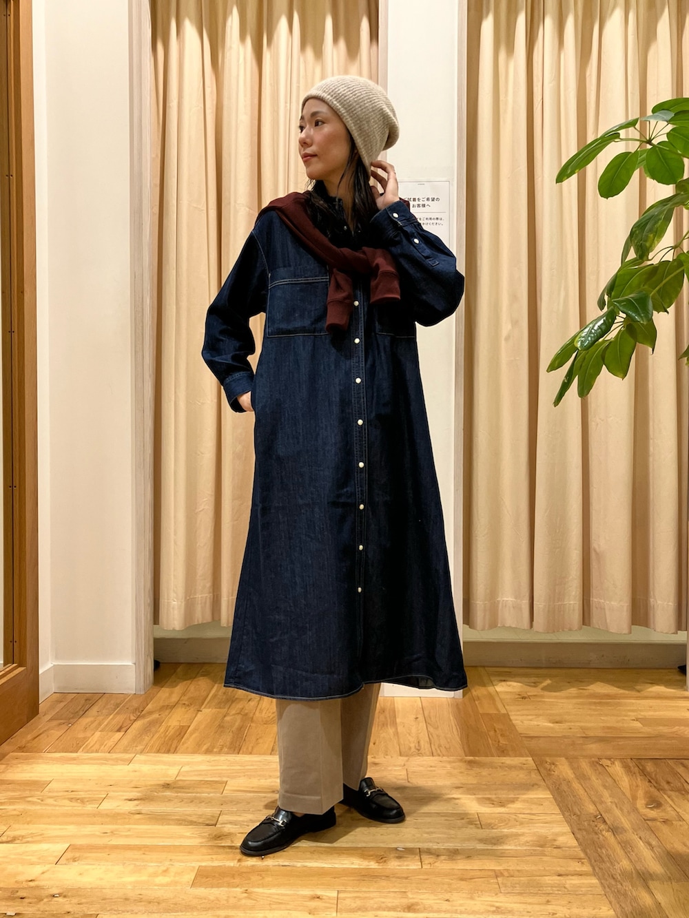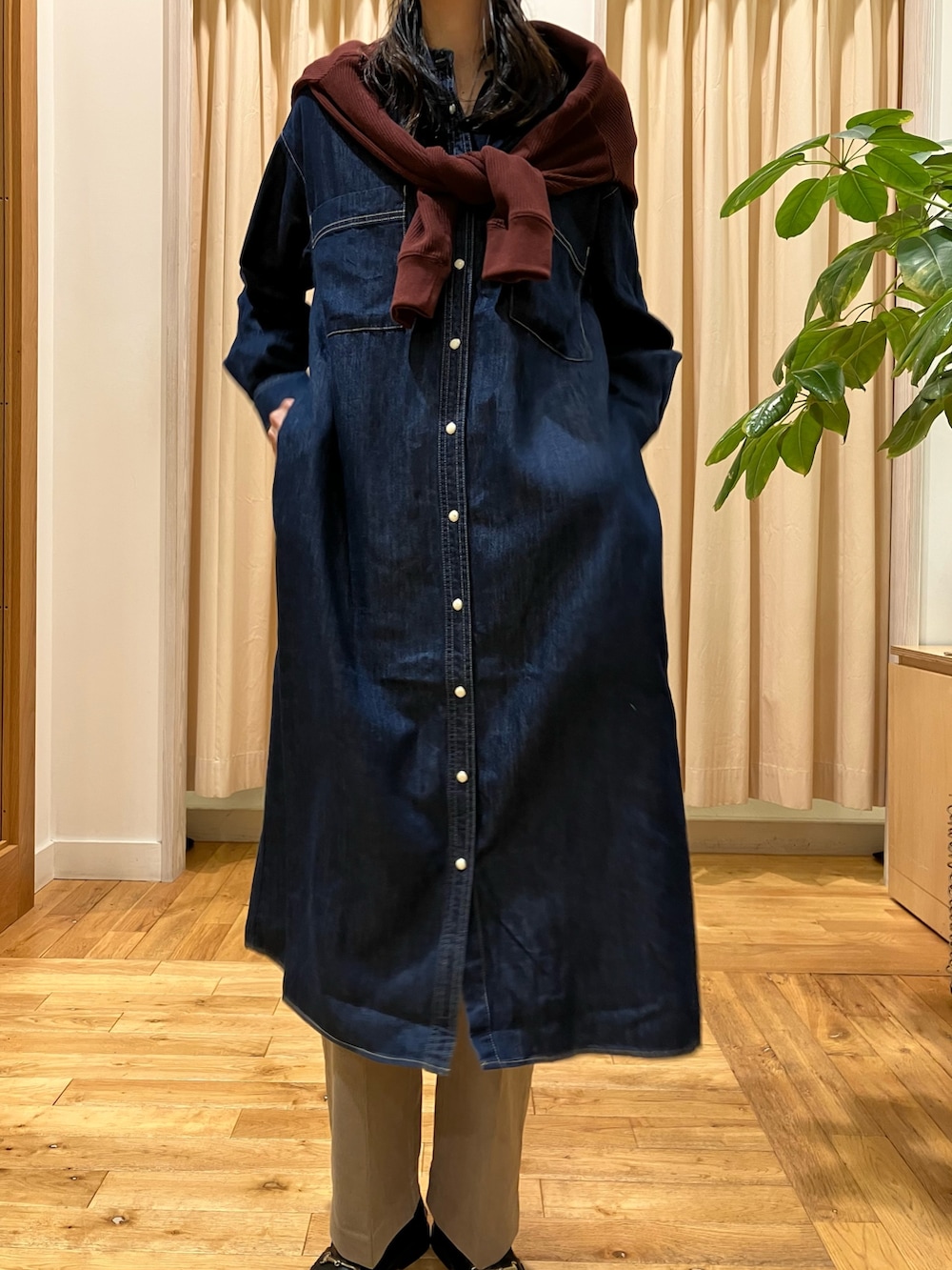 軽い羽織としても便利なデニムシャツワンピース。柔らかい落ち感のある素材なので、大人カジュアルに着ていただけます◎