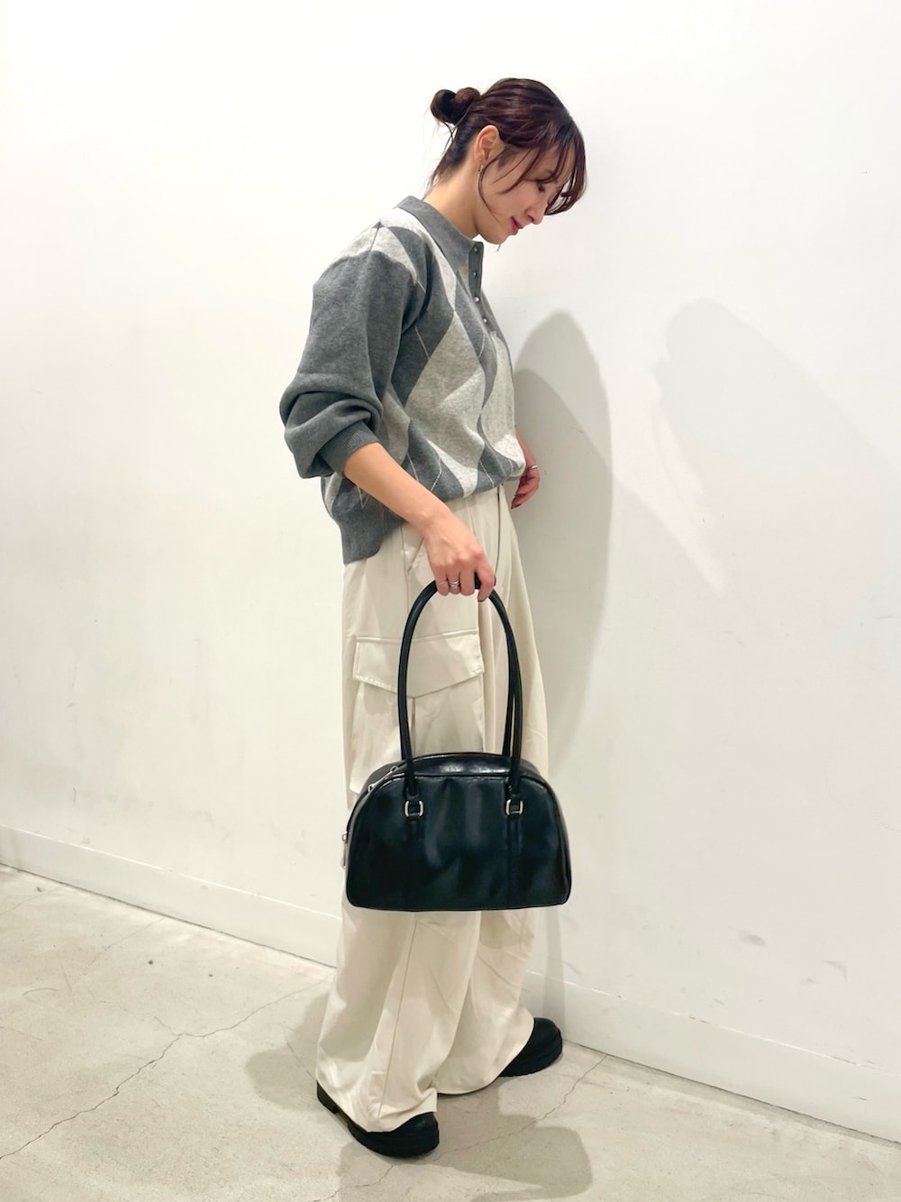 冬らしいアーガイル柄のニットはポロシャツ風なデザインがカジュアルなアイテム⛄️