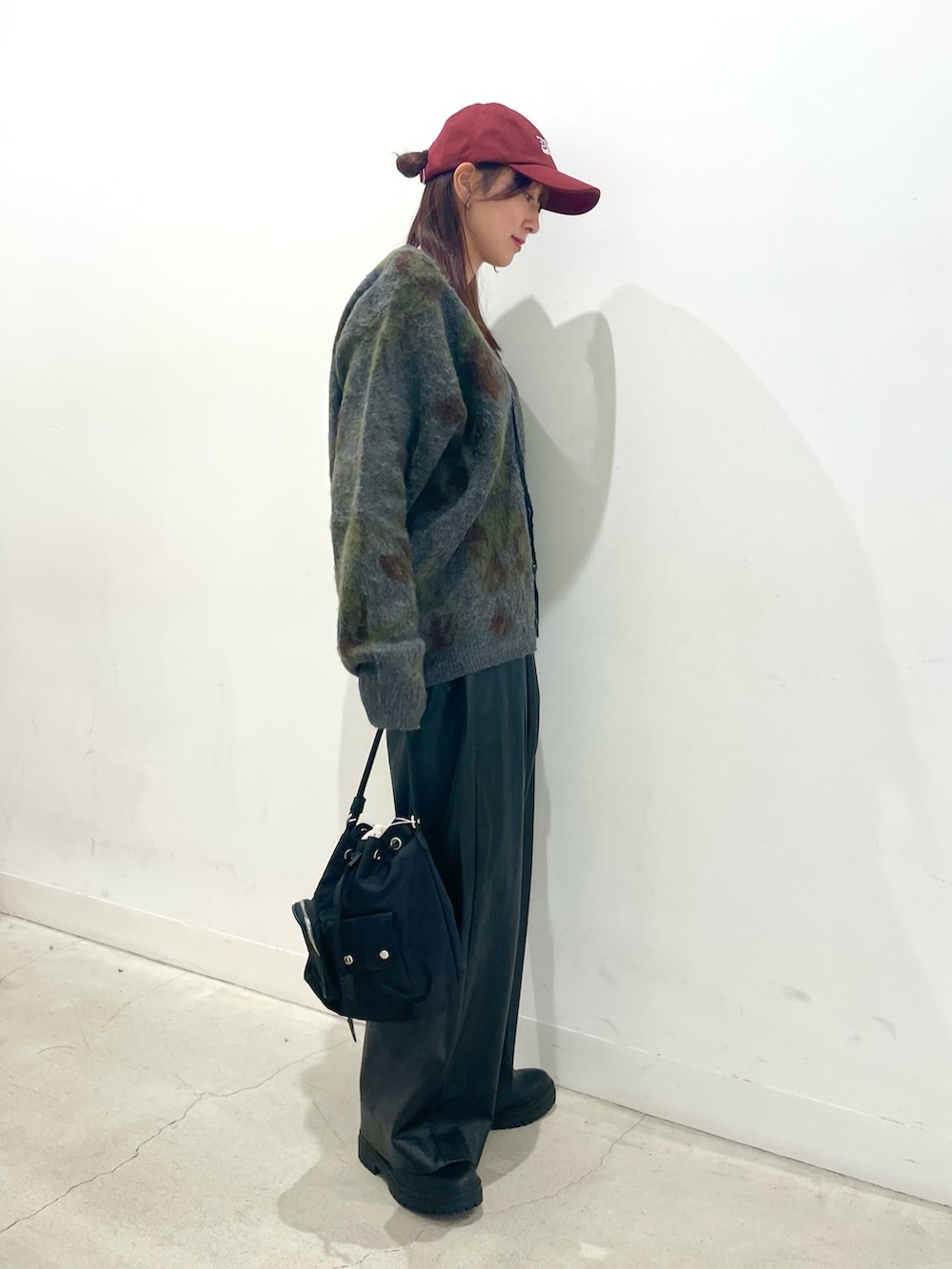 メンズアイテムのカーディガンとレザーパンツを使ったコーデ!