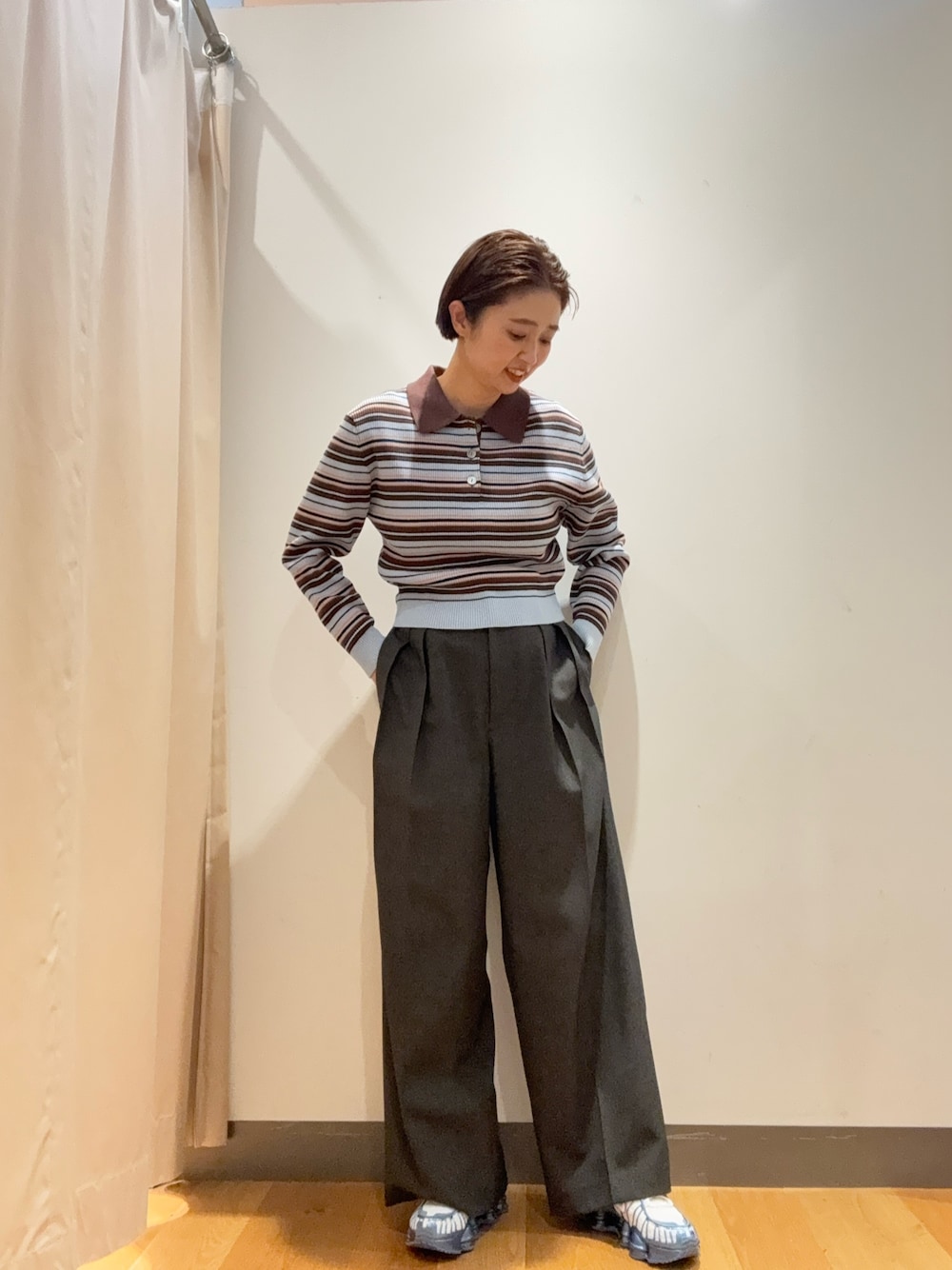 キュロットは長めの丈感が嬉しい!靴下やブーツ合わせもしやすく、大きめなプリーツなので可愛くなりすぎずかっこいい印象に🙆🏻♀️