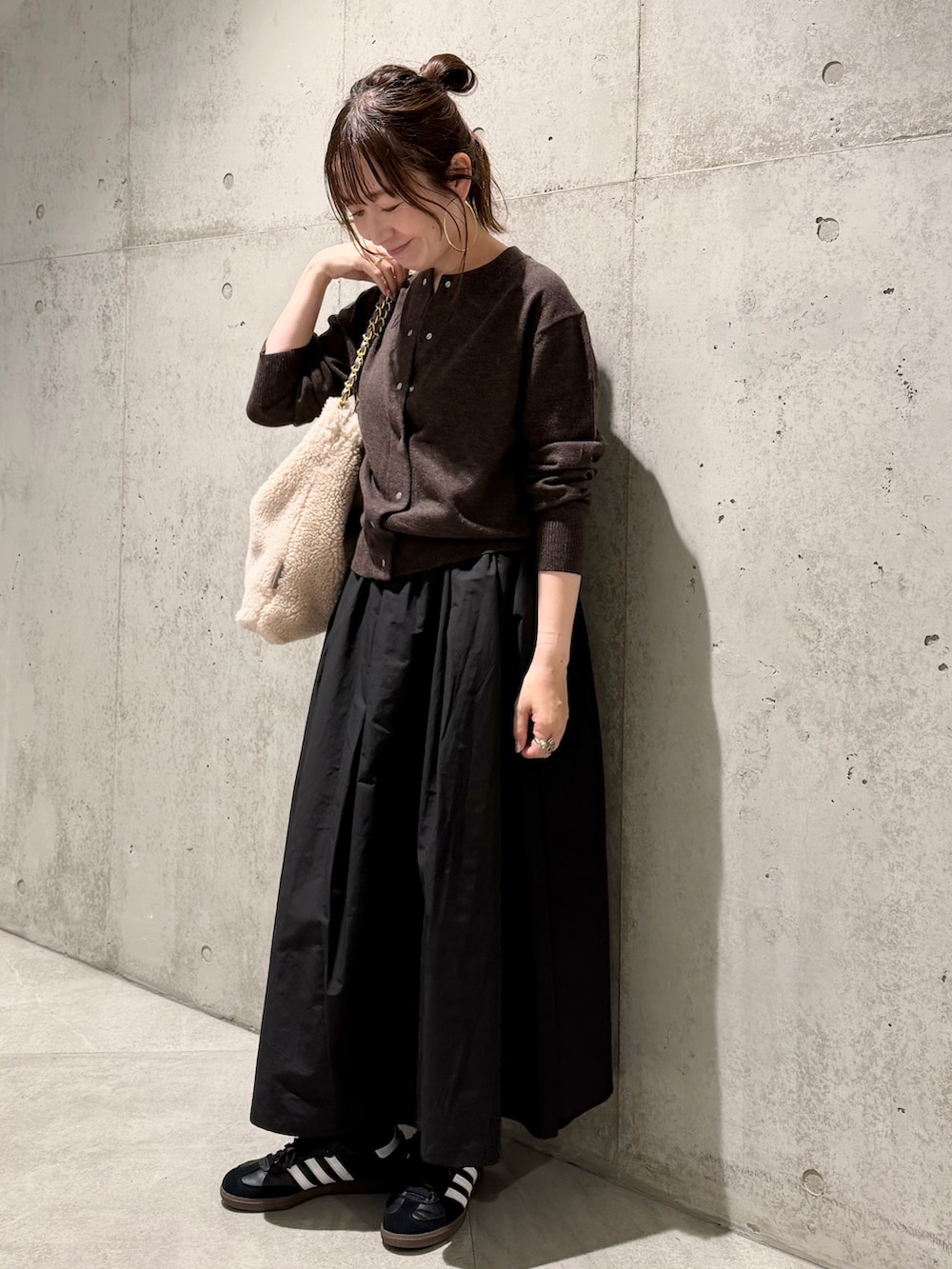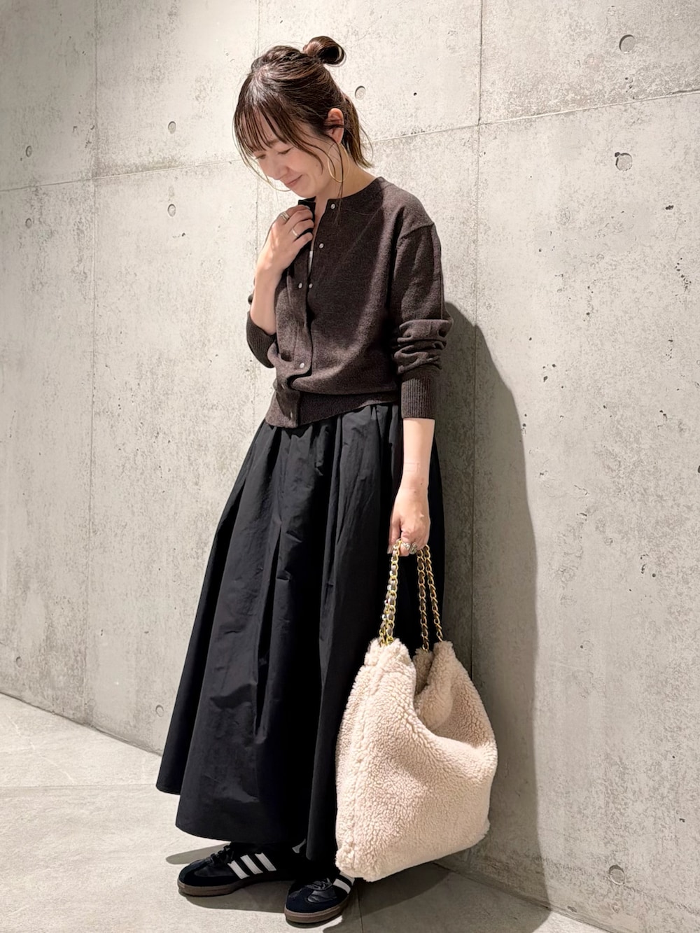 今回は、たっぷりとしたボリュームが存在感のあるスカートと合わせた、大人カジュアルコーディネート。