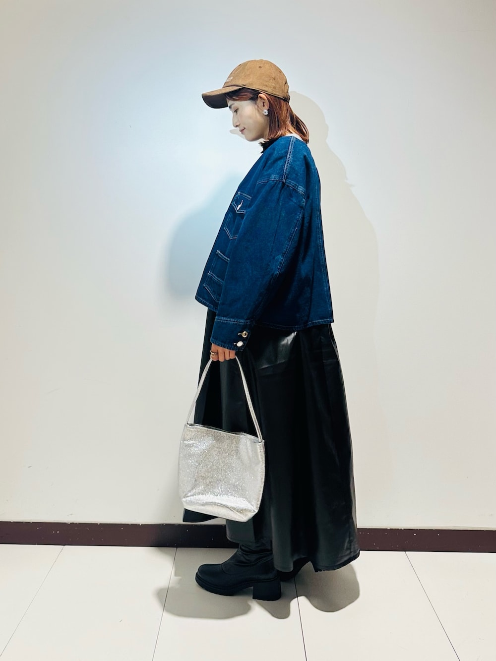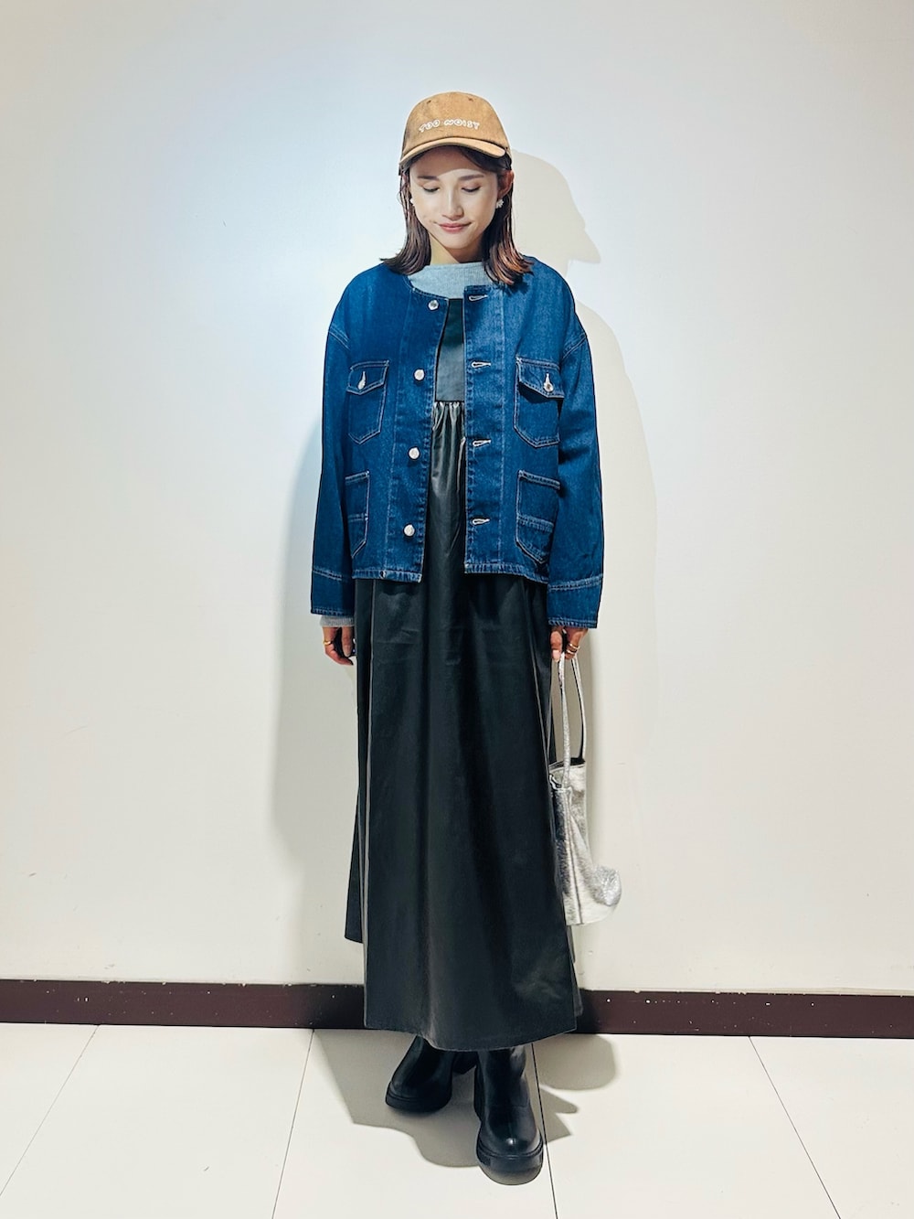 今回着用カラーのワンピースの素材は、フェイクレザーで高見えする1着になってます☝️