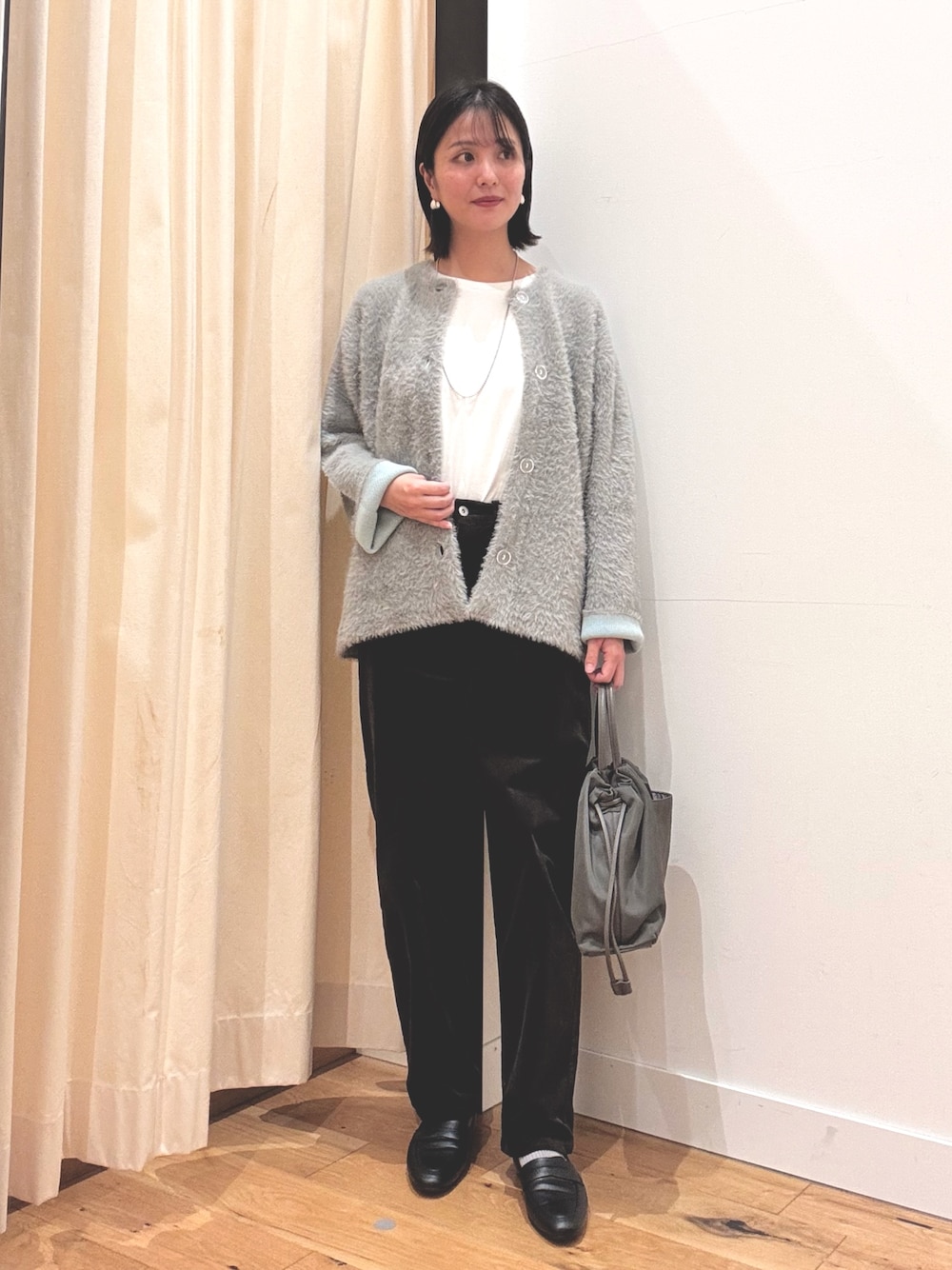 ボタンを留めてスタンドカラーにすれば防寒はもちろん小顔効果も、、♡