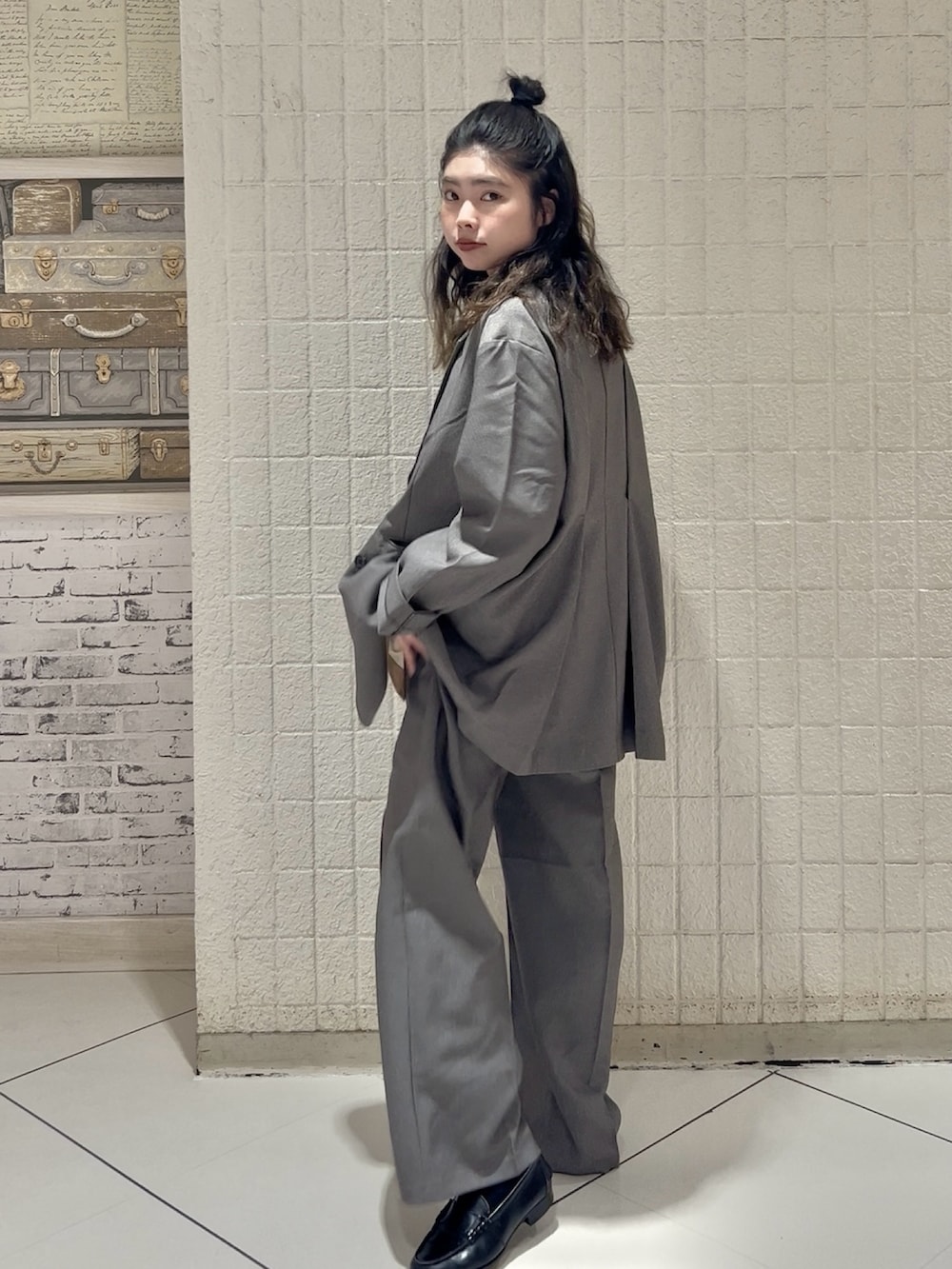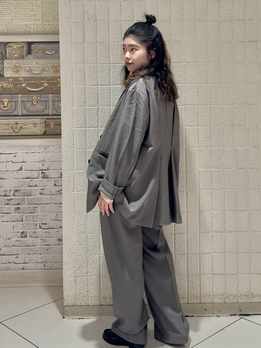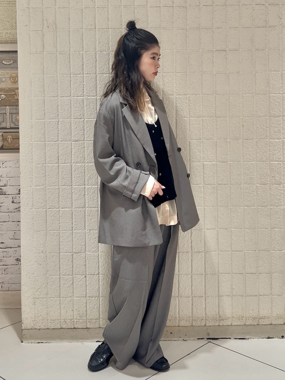 スラックスはしっかりワイド、丈感たっぷりでスタイルアップを狙えます( ◠‿◠ )