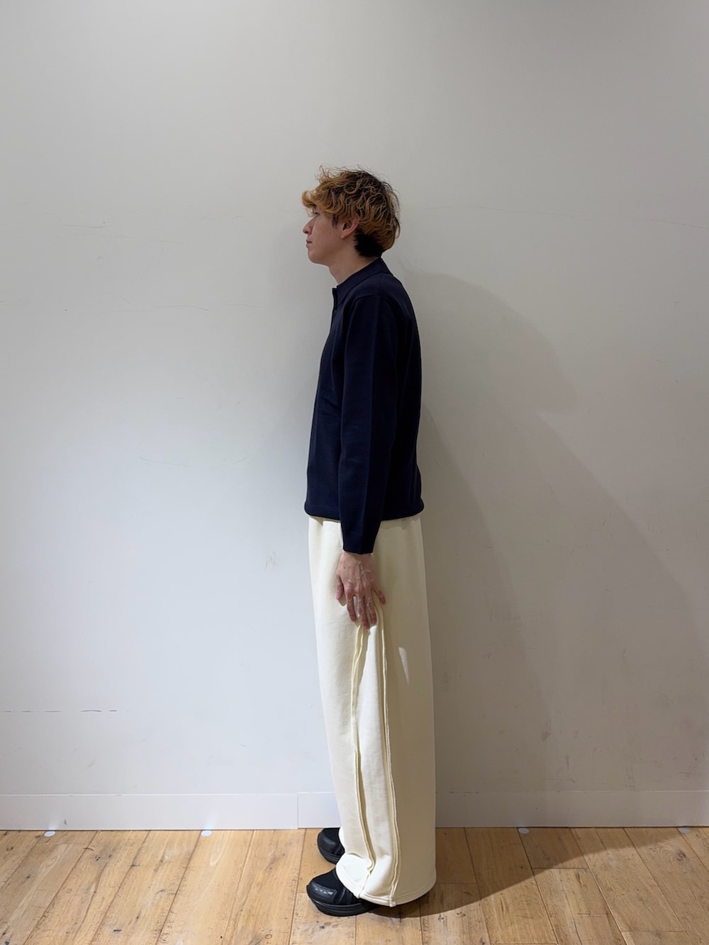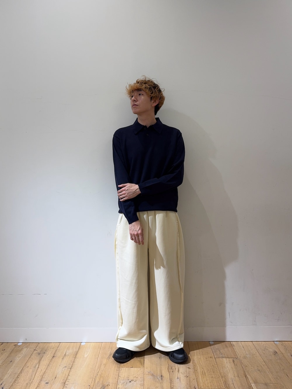 ニットポロと合わせればさらに大人な印象に仕上がりますね!一本持っておいて損はありません!!