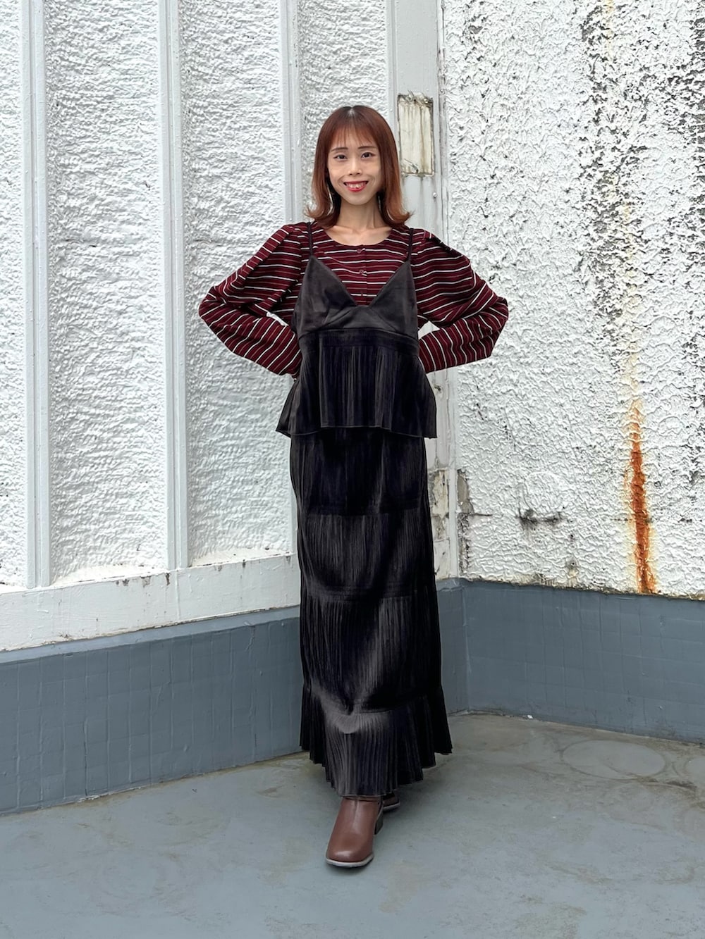 ベロアの素材なので着るだけで季節感が出せますよ🤎