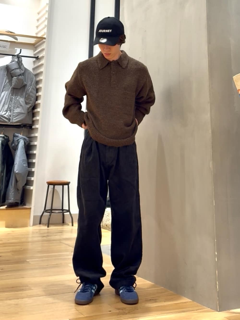 オーバーサイズでゆったり感があるため、ガーリーになりすぎないようキャップでメンズらしさを調整しました。