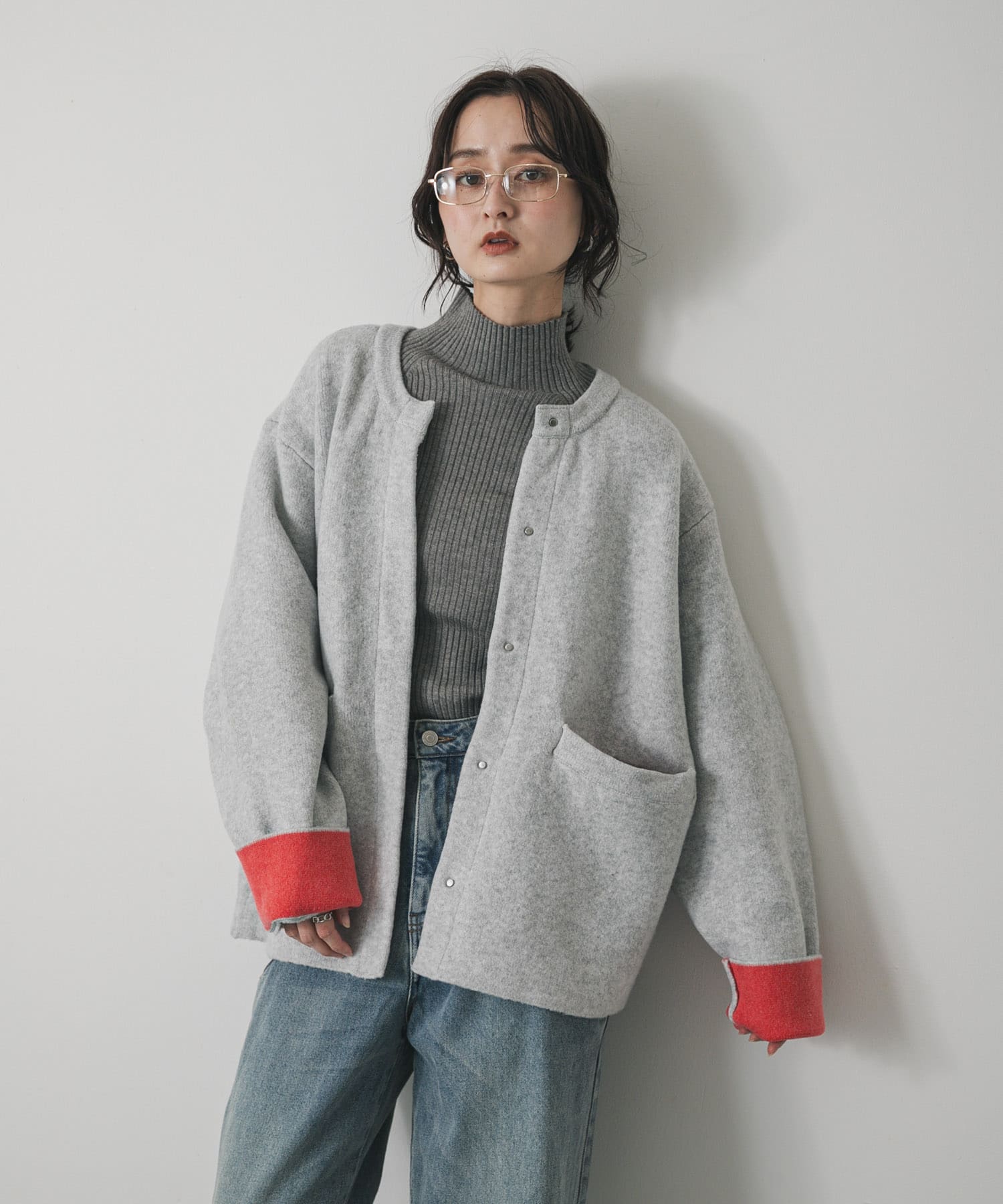 SENSE OF PLACEバイカラーニットコート- 着用カラー: