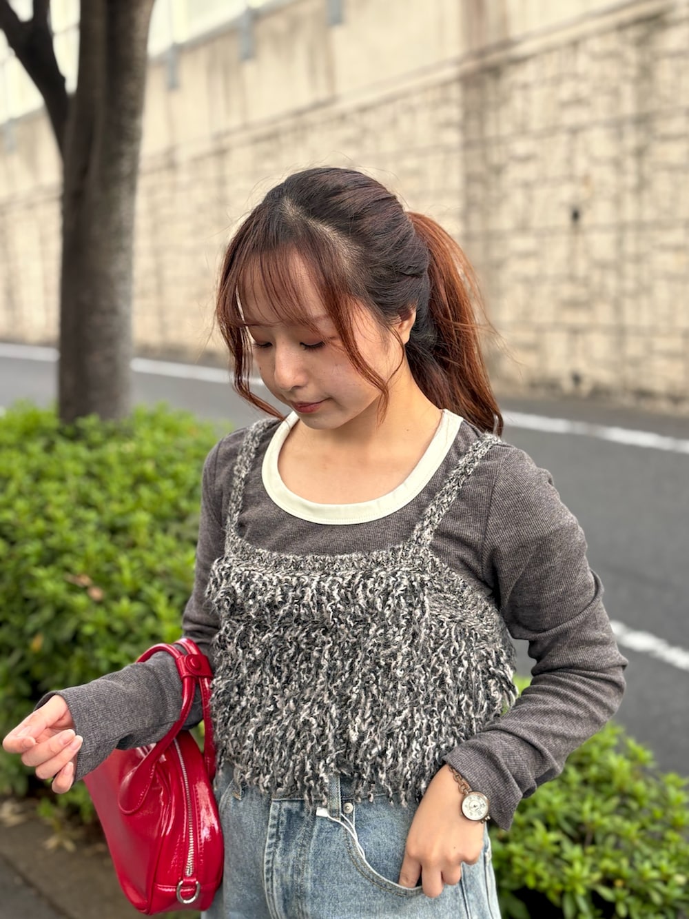 シャツやカットソーとのレイヤードスタイルがおすすめです♪