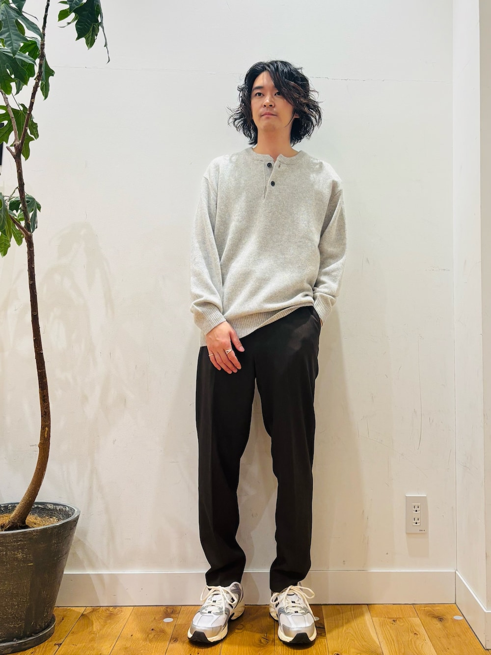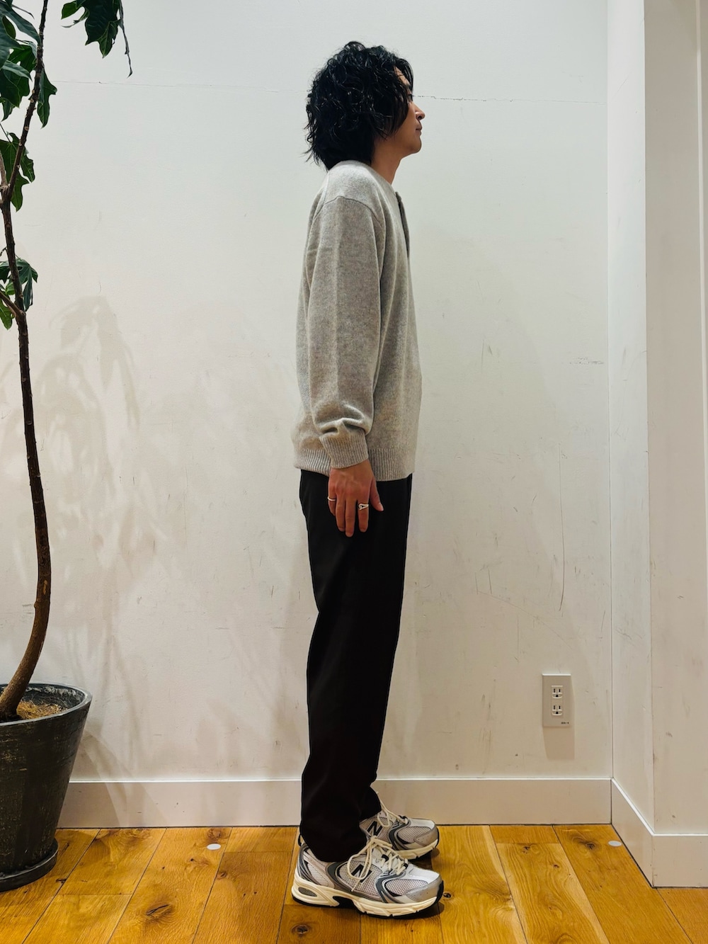 身幅がゆったりめなのでインナーにシャツやタートルネックで合わせるのもオススメ。