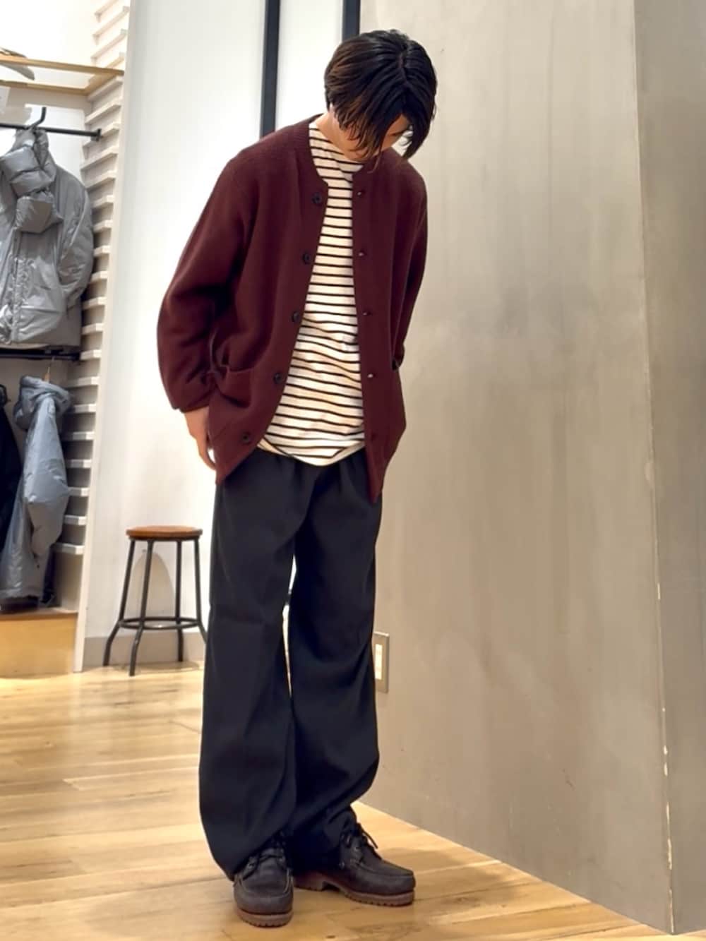 毎年ご好評頂いているハミルトンウールシリーズのガーターカーディガンを使ったコーデです。