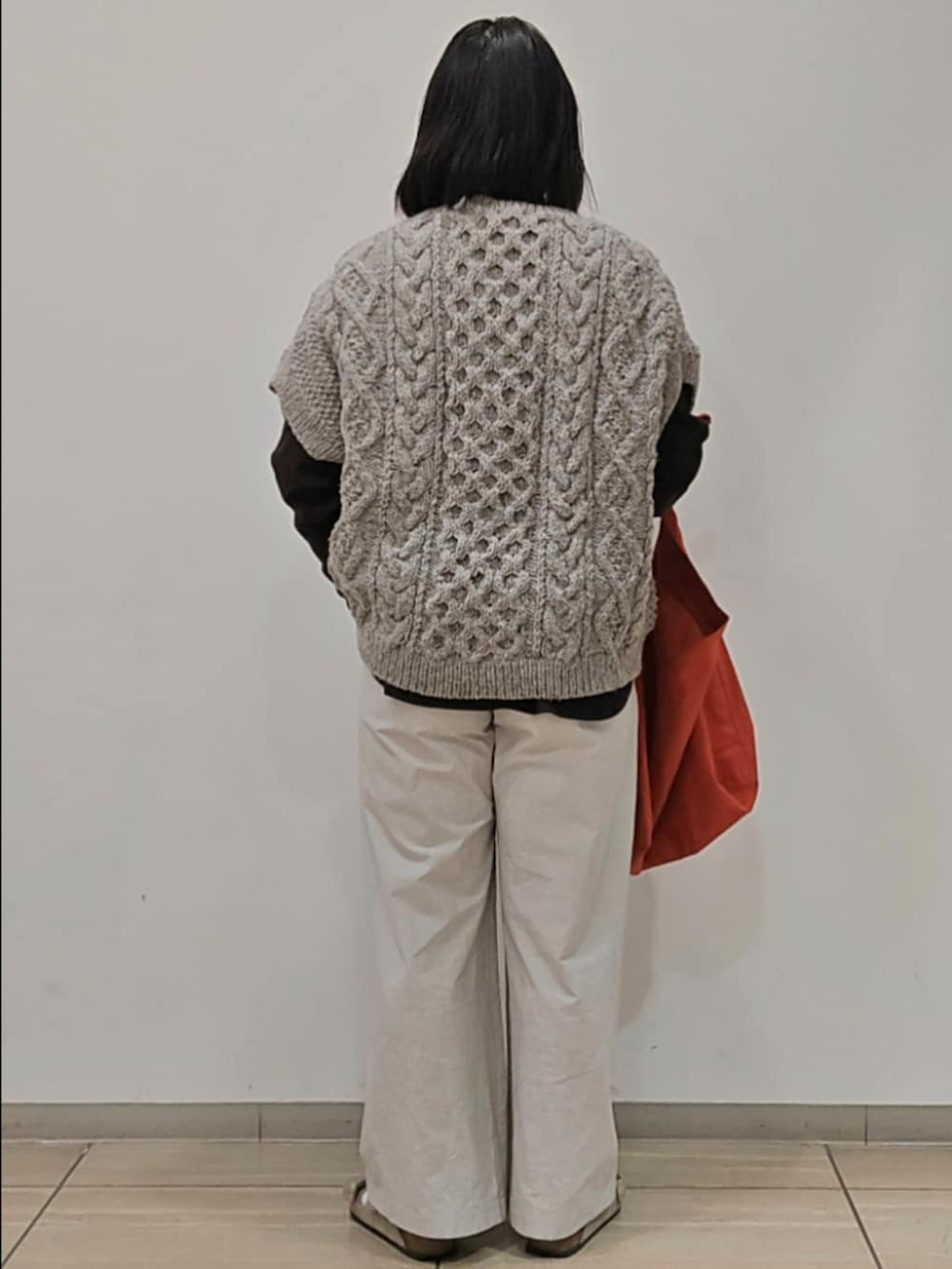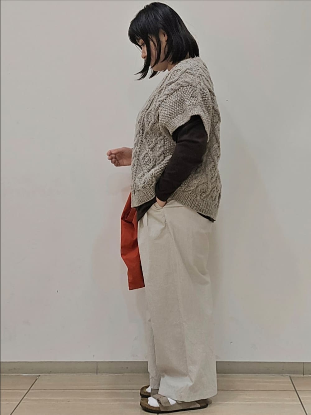 存在感のあるニットベストを主役にコーディネートを組んでみました!