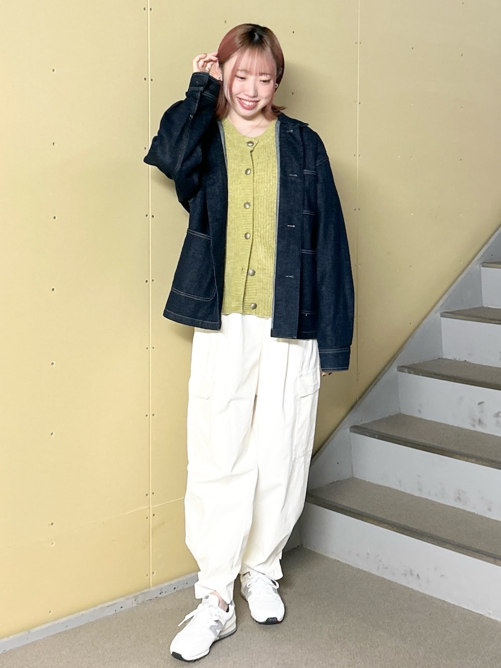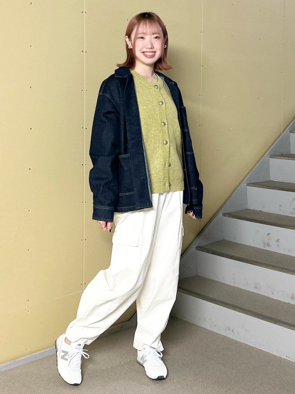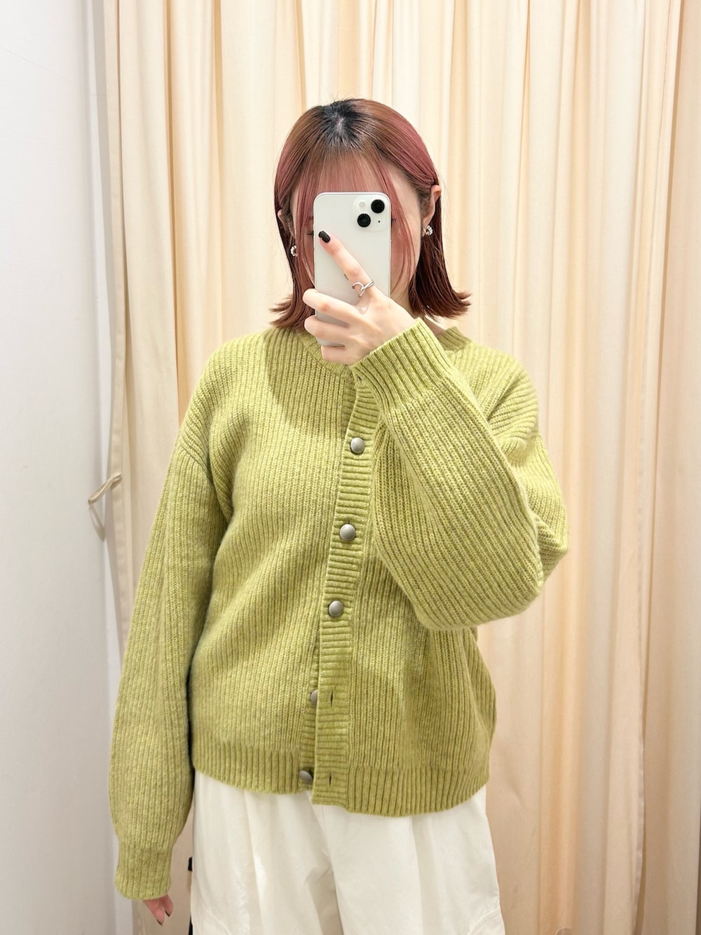 綺麗め、女性らしいアイテムとしても使えるニットのカーディガンを、今回は少しカジュアルに着てみました!!