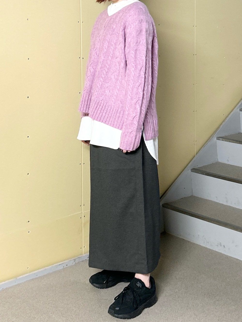 スカートはゆとりがあるサイズ感なので、すっきり見せつつ、楽ちんに履けます😍
