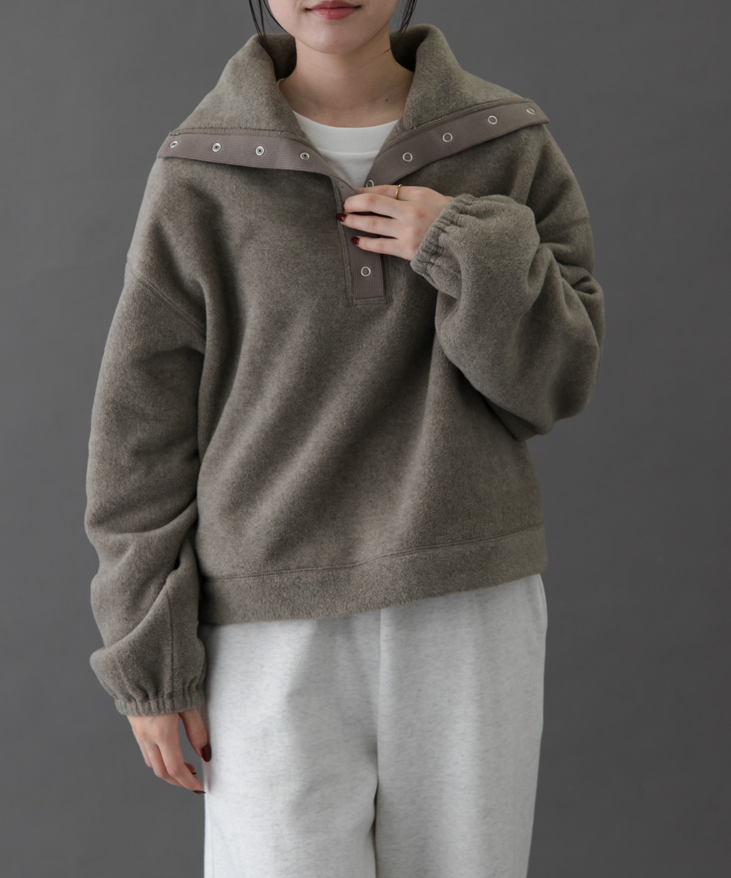 スナップタートルフリースプルオーバーは、タートルできても襟を折って着てもかわいいです!