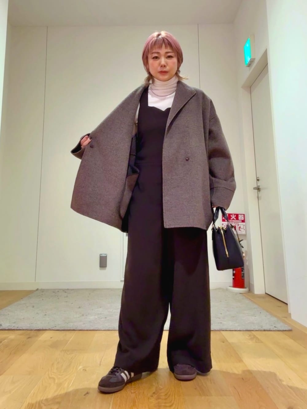 ブラウンのサロペットは落ち間があり、甘くなり過ぎないのでサロペットが苦手な方でも挑戦しやすいと思います。また、サイズも2サイズご用意があります。アウターは細かいチェック柄でどんなコーデにも邪魔にならず合わせやすいのでおすすめです!素材感も柔らかく気持ちがいいです!