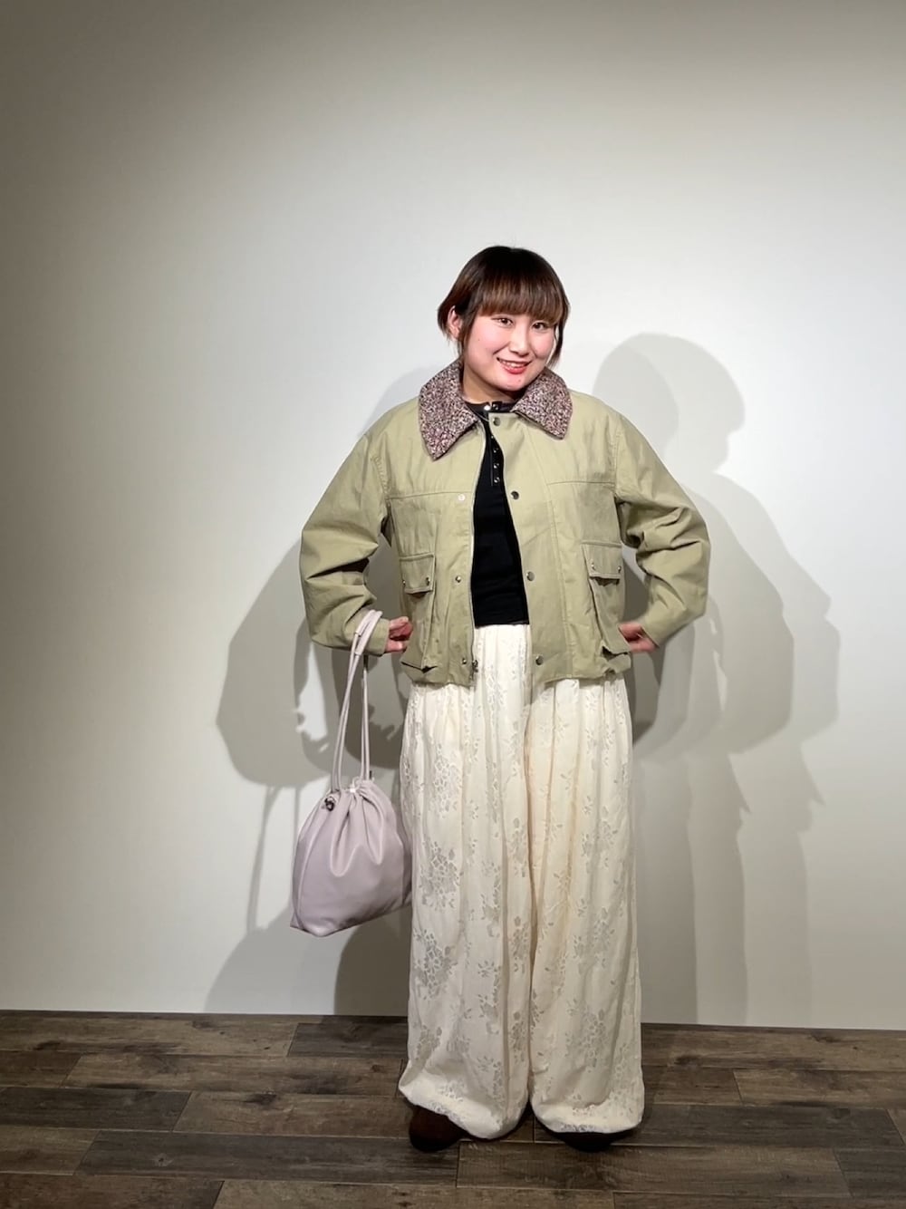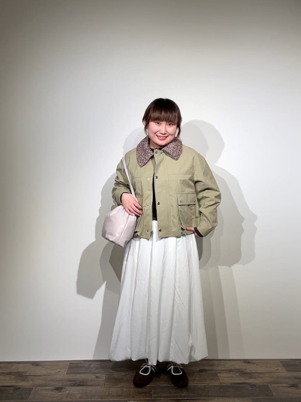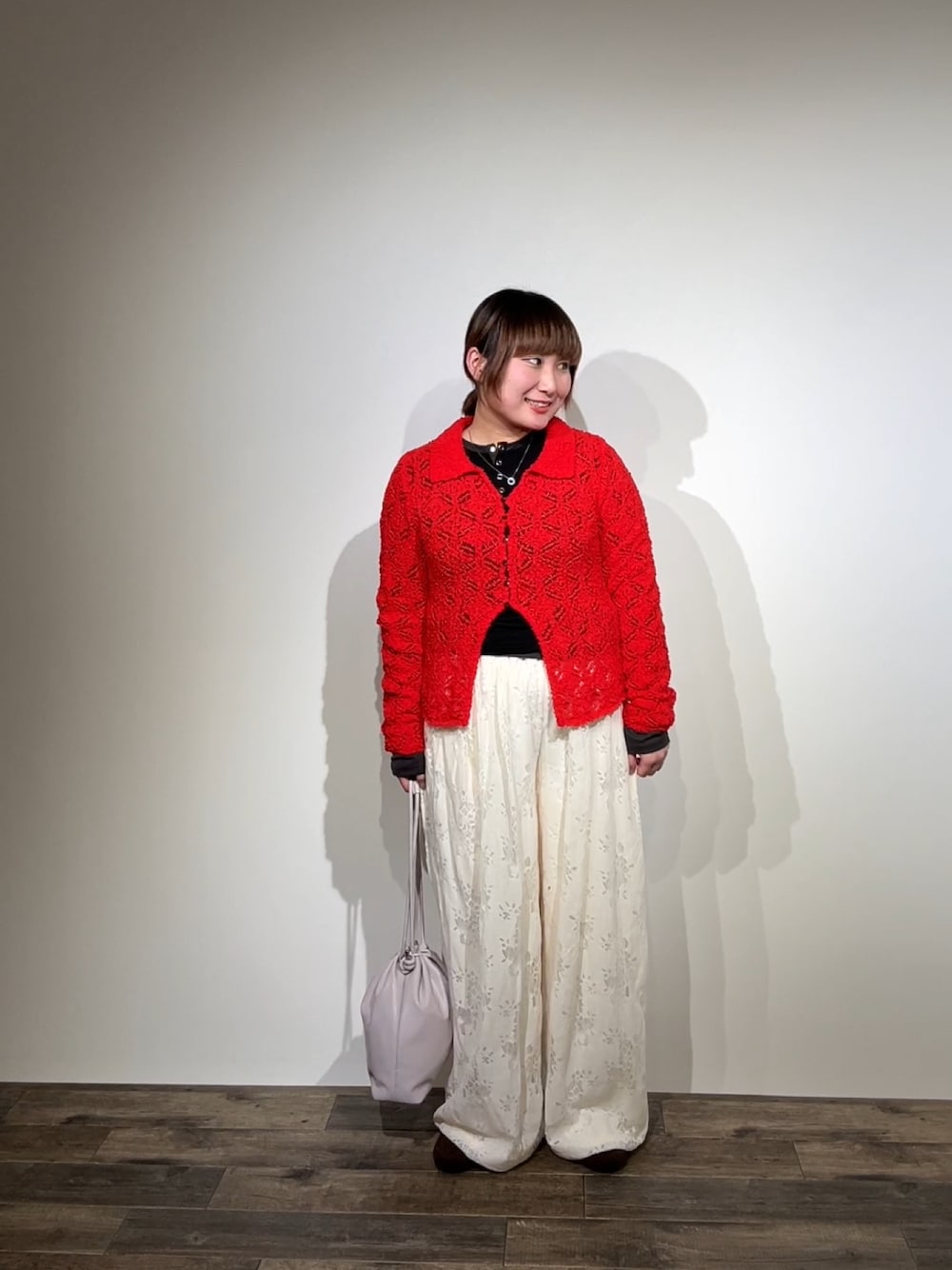 カーディガンはアイボリーとグレーが混ざったような色でとてもかわいいです🤍