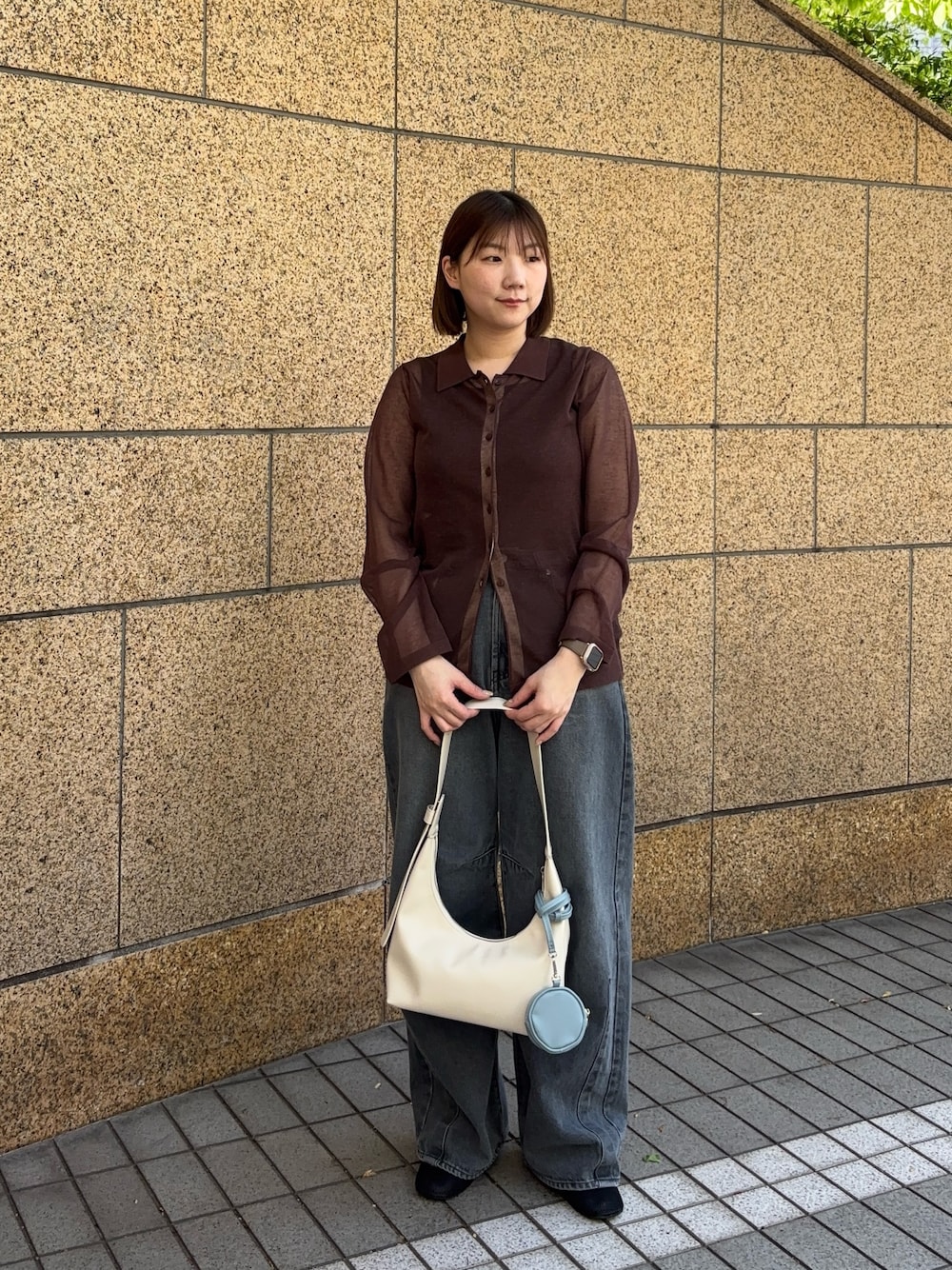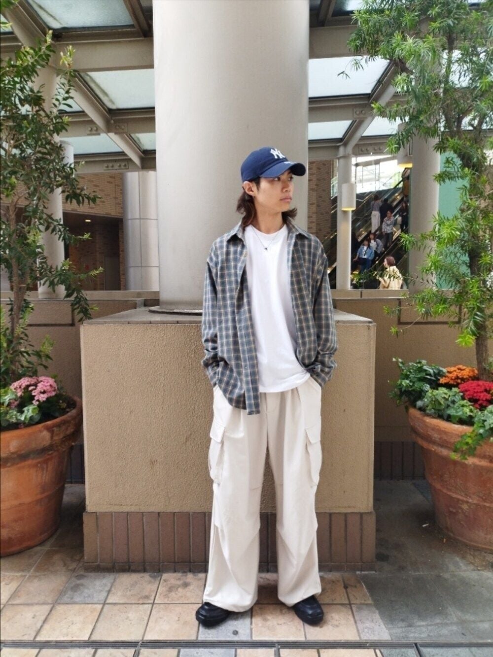 チェックプリーツスカートと合わせてカジュアルめに。