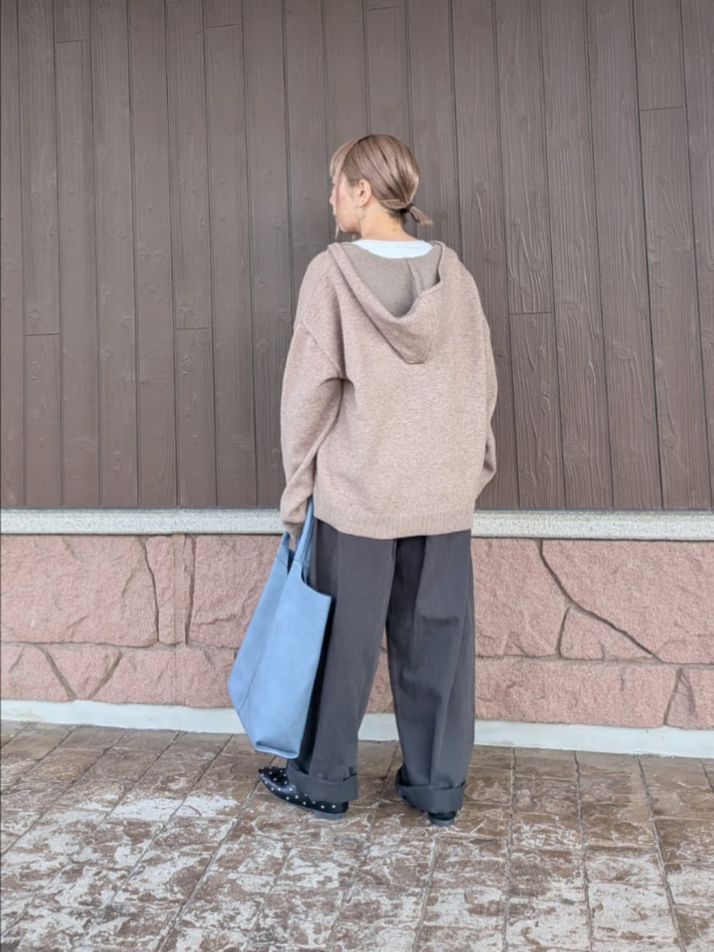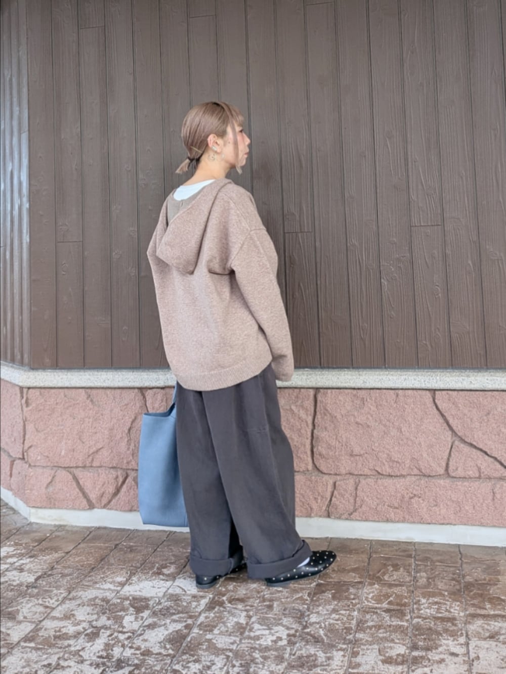 ベージュとグレーの中間色同士の組み合わせにブルーの差し色で締めてみました。