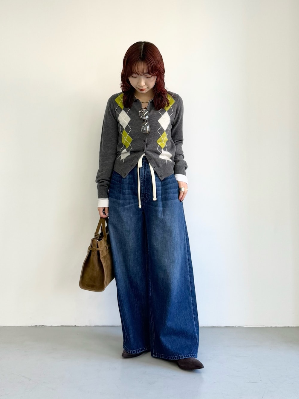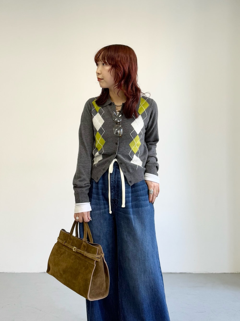 アーガイルシャツカラーカーディガン