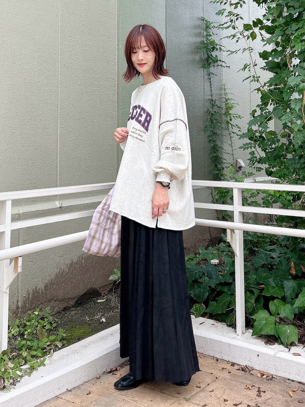 ✔︎秋冬コーデにぴったりなフェイクスエード生地。落ち感があってプリーツも綺麗です