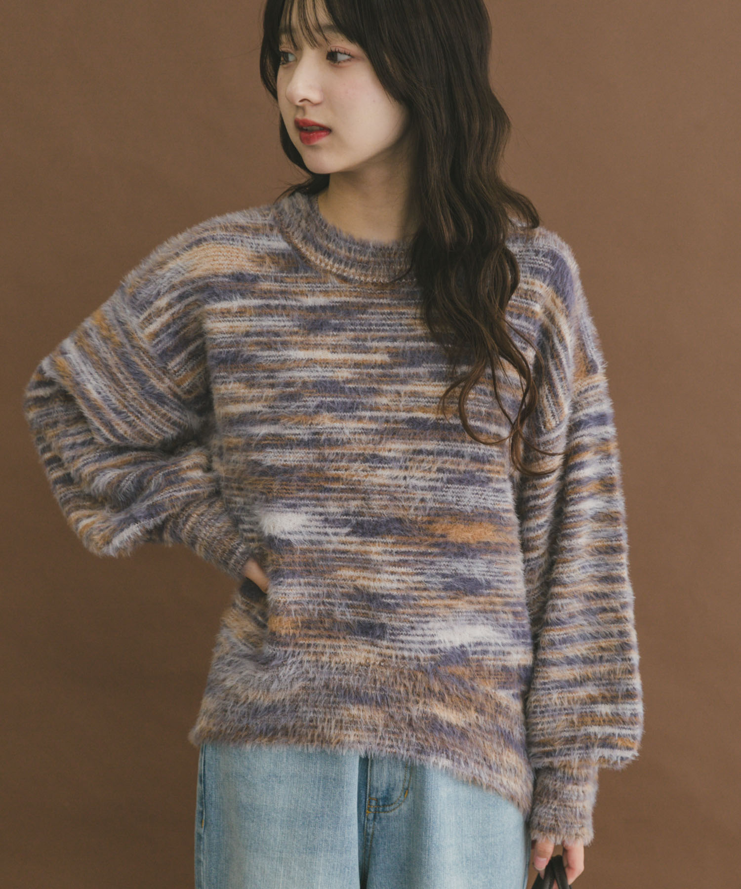 色合いが目を引くシャギーニットに別注Leeのバギーデニムでカジュアルなコーディネートにしました!