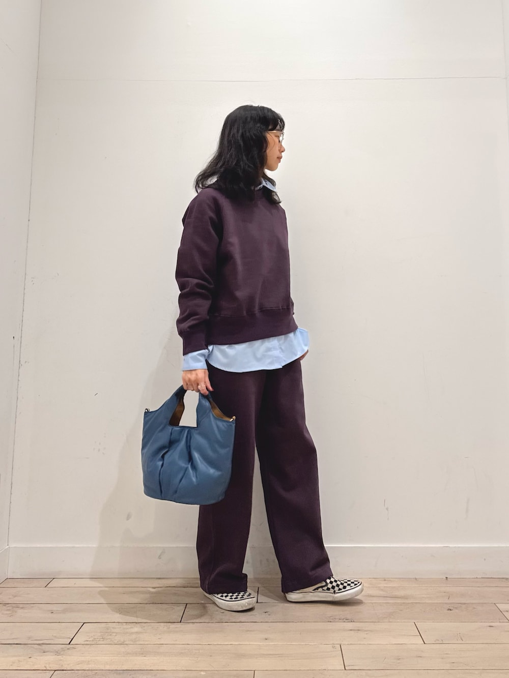 インナーにブルーのシャツを入れてラフになりすぎないようにしました☺️