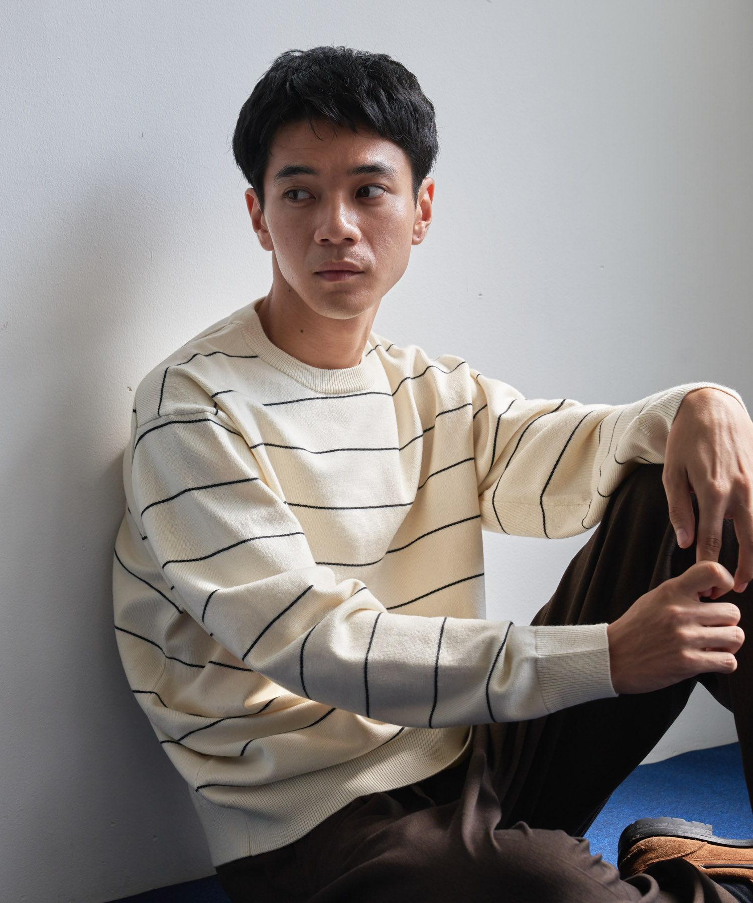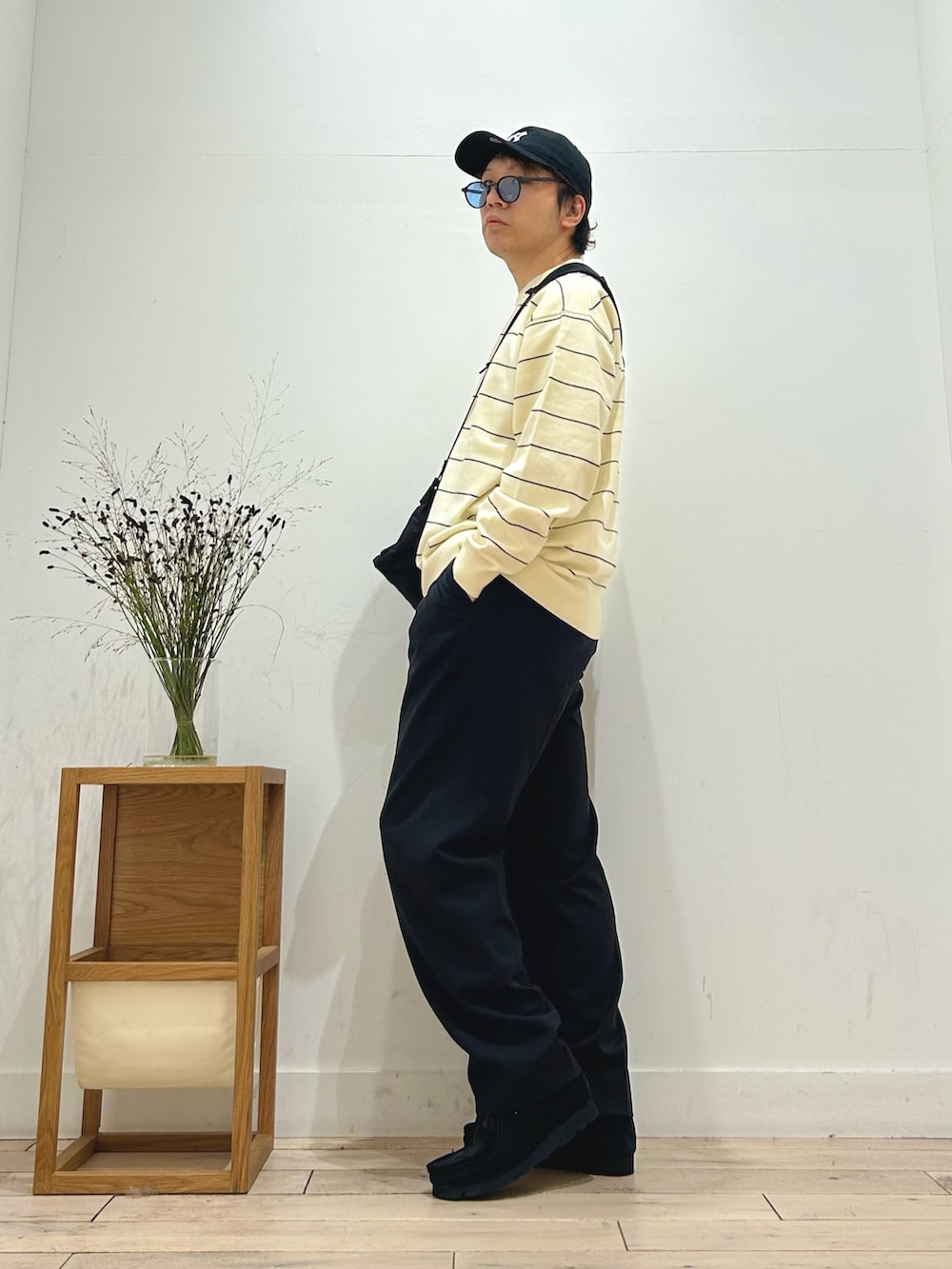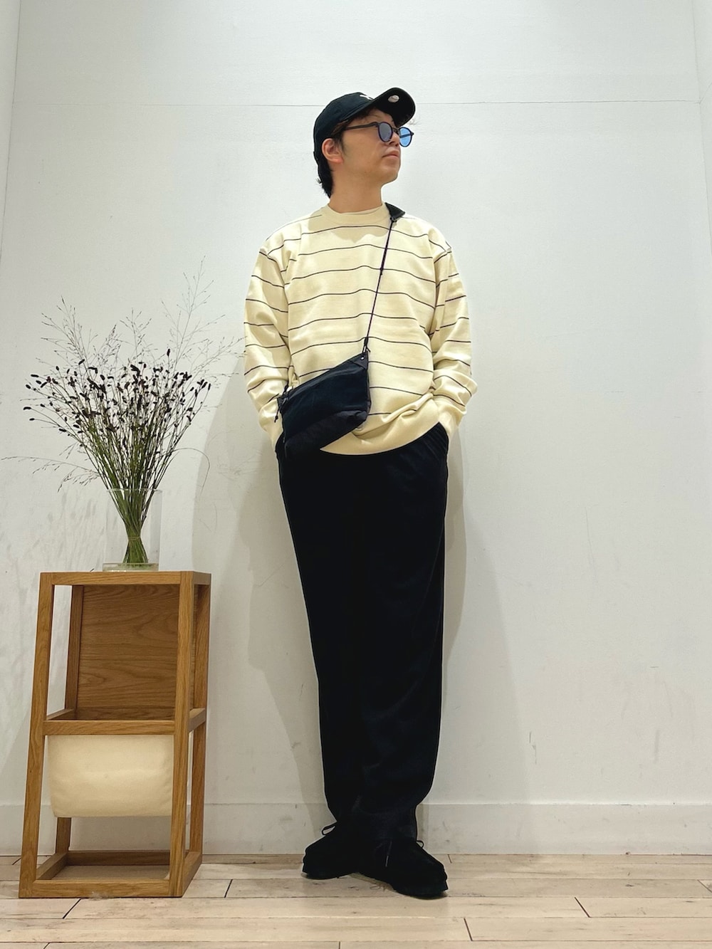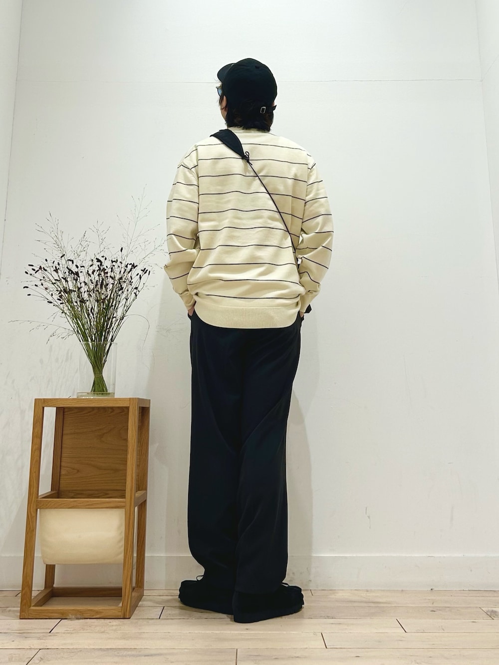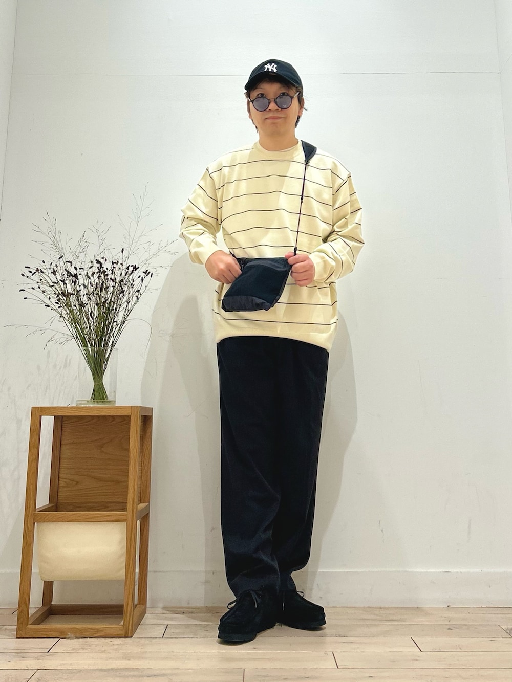 シンプルな無地もいいですが、さりげないボーダーでこなれ感を出しつつ、インナーにいれてもアクセントになります✌️