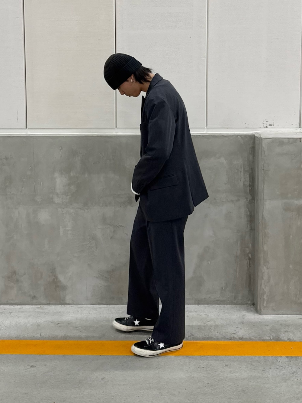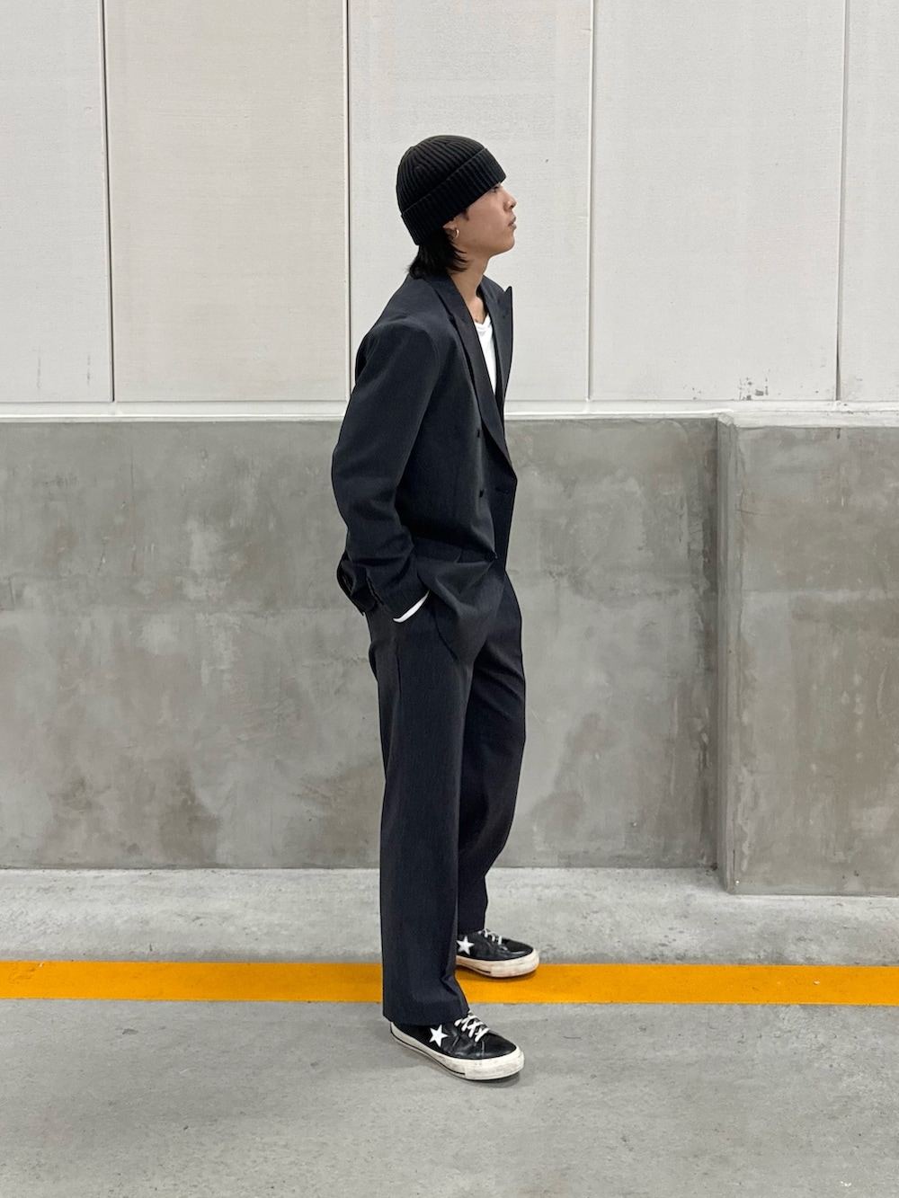 今日はセットアップを着ました!ビーニーとスニーカーで外してちょっとカジュアルを混ぜて着ました!今の寒くなってきた時期にセットアップとかプライベートでも着たい!帽子とか靴をスニーカーにするとフォーマル感を崩せると思います!