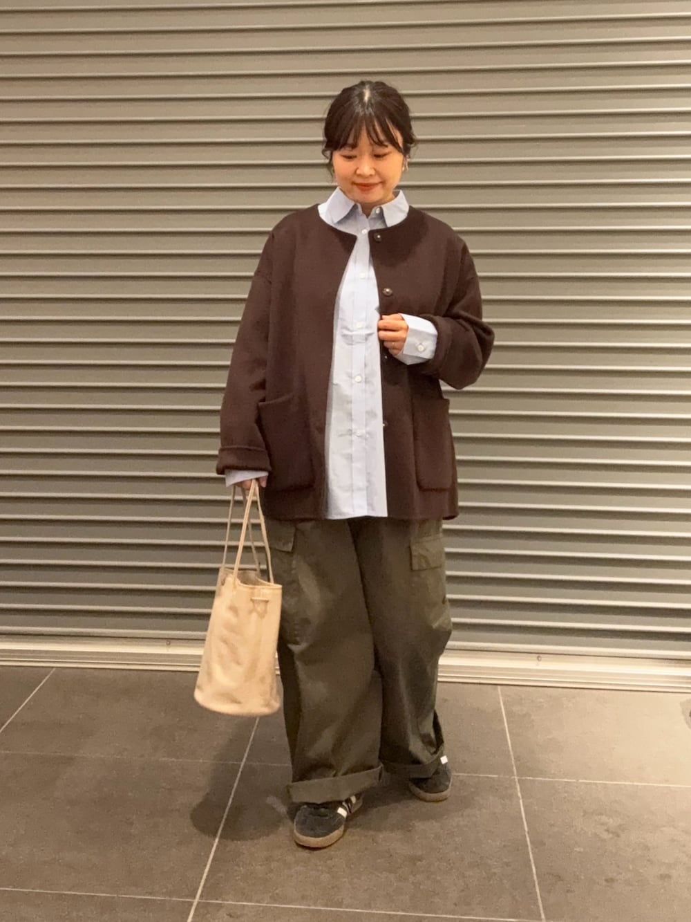 ノーカラーコート×シャツ合わせは王道で可愛いです。