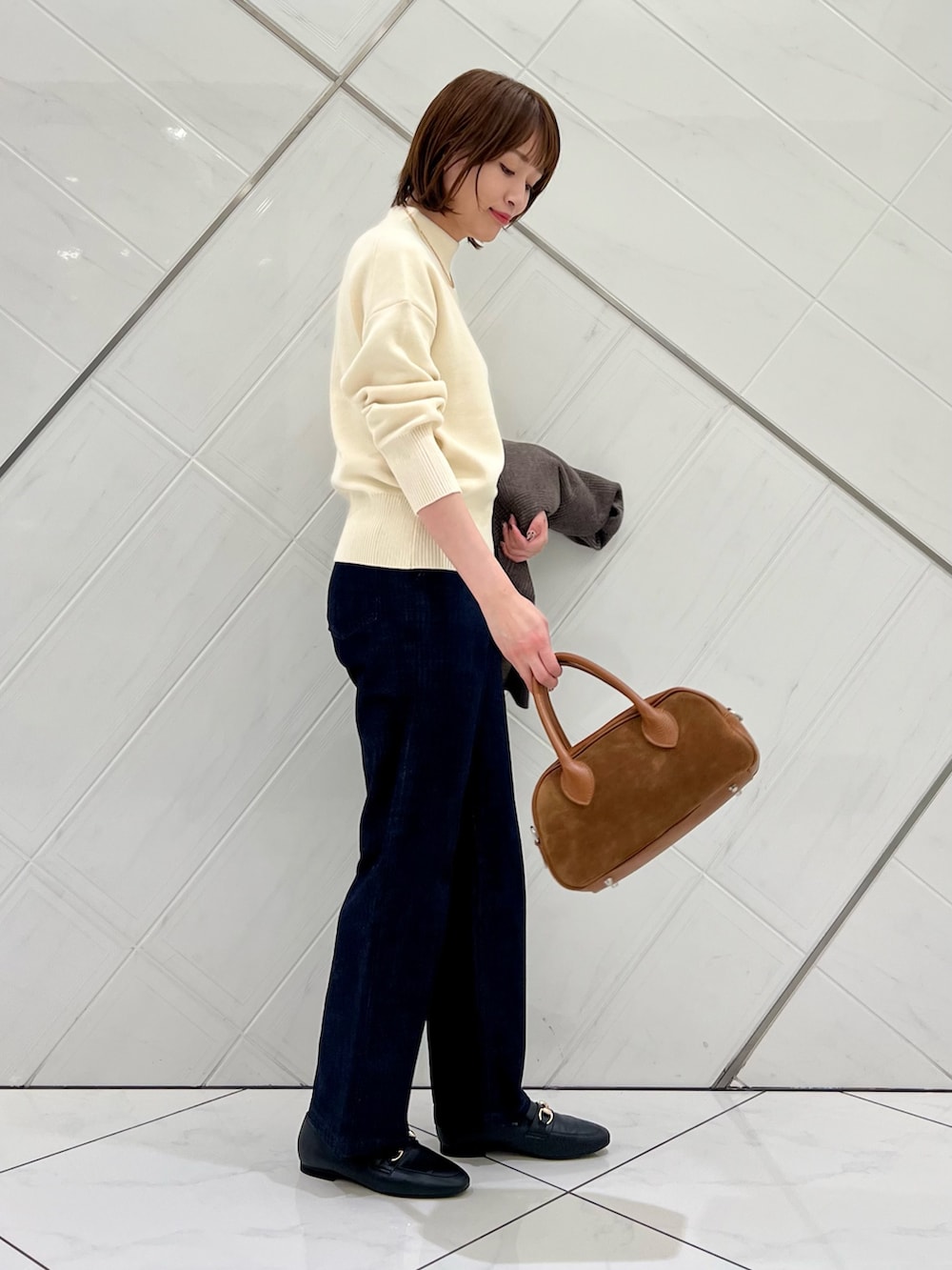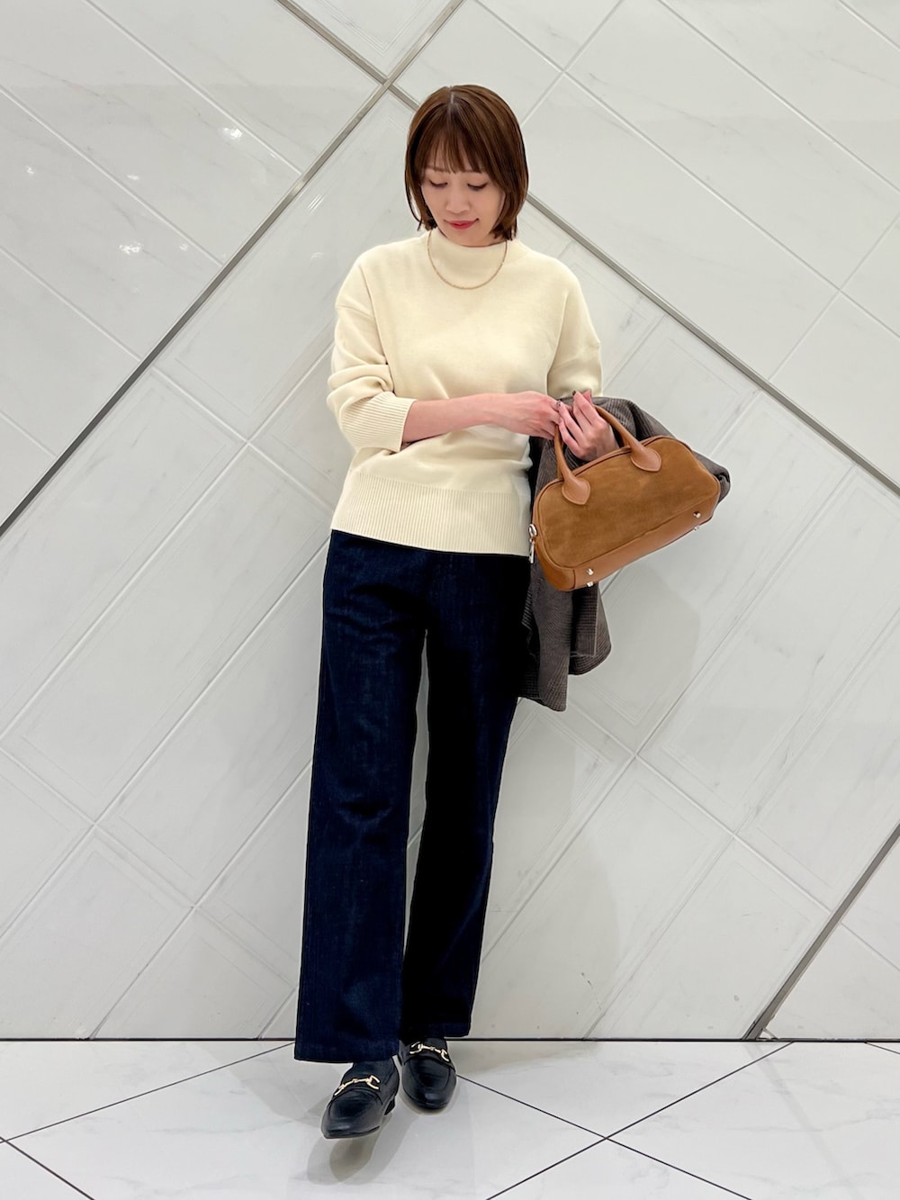 肌触り抜群のニットはボトルネックでシンプル