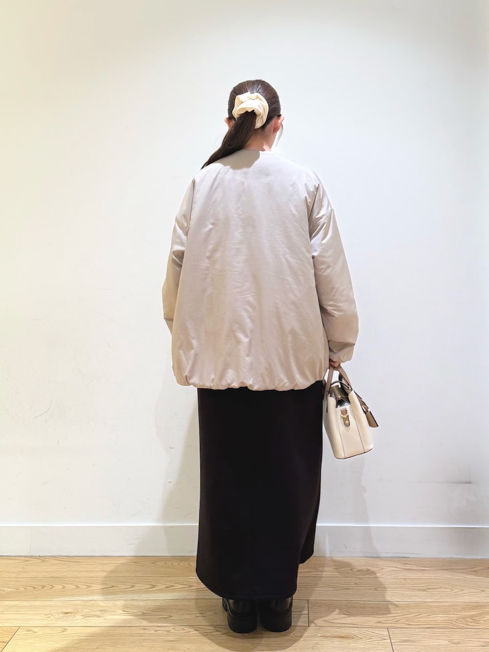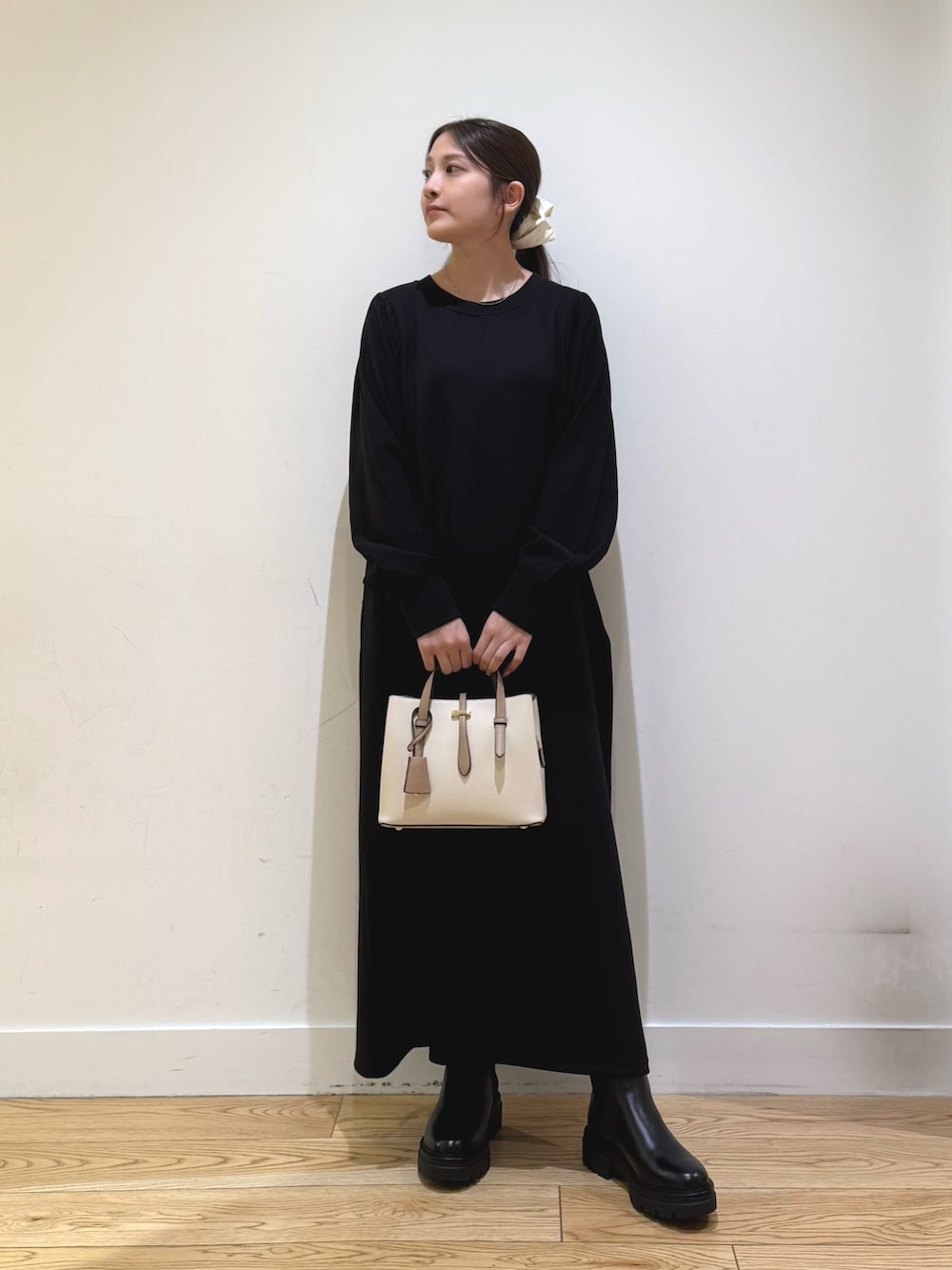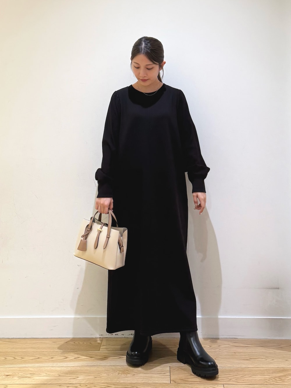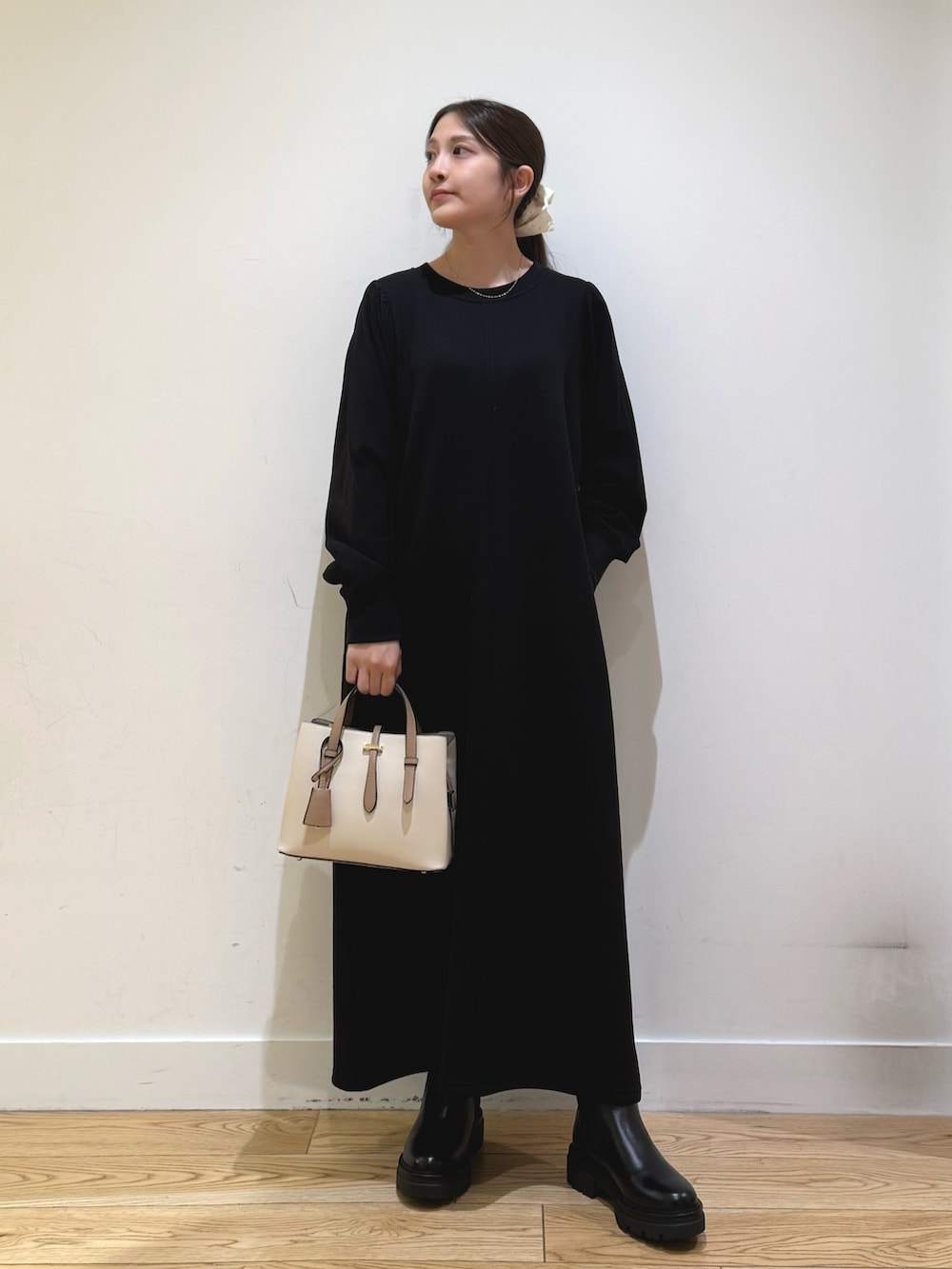 ボリュームスリーブドッキングワンピースは、ポケットが付いていて便利で、小物次第できれいめにもカジュアルにもできます!